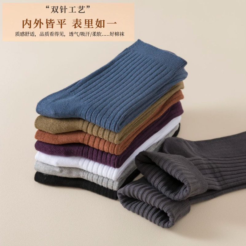 Inexplico 9988 upscale double stitch full cotton 10 Double socks Men's middle cylinder Sox pure cotton spring and autumn Men's sock Sweat Business Long Sox-Taobao
