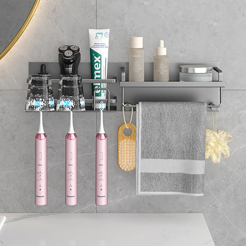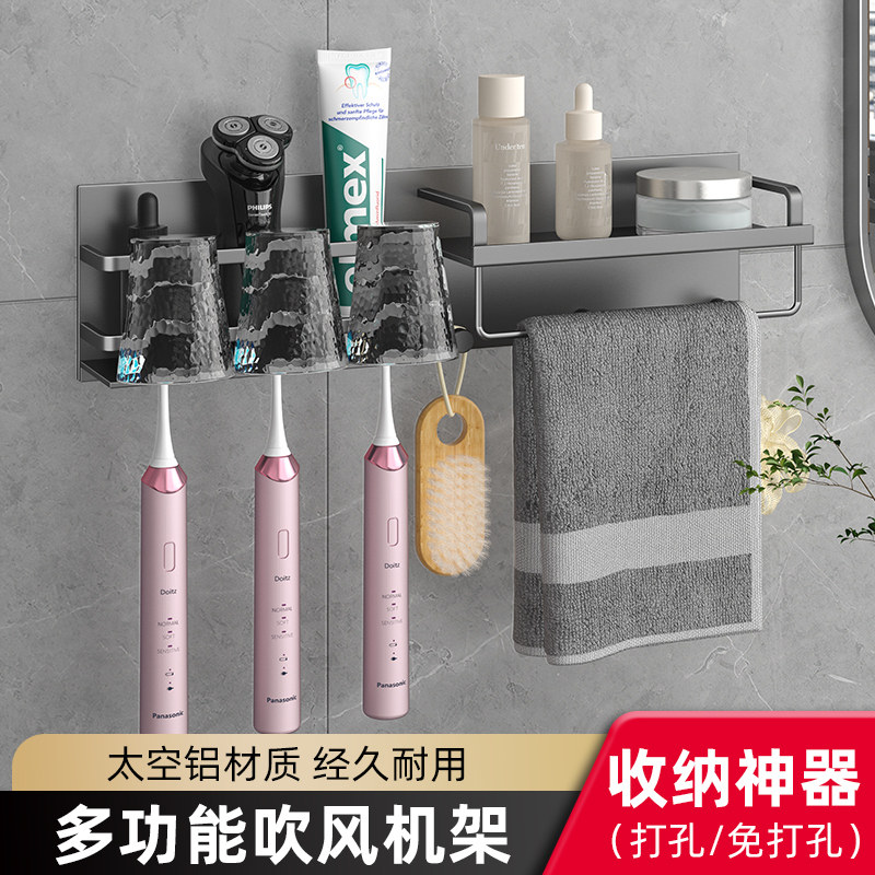 1835 electric toothbrush rack free of punch toilet space aluminum bathroom wall-mounted dental cup toothpaste containing shelf-Taobao