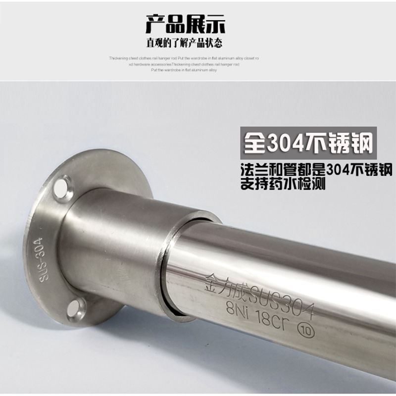 Customized full 304 stainless steel shower curtain rod thickened straight rod wardrobe clothes rail fixed hanger balcony clothes rail