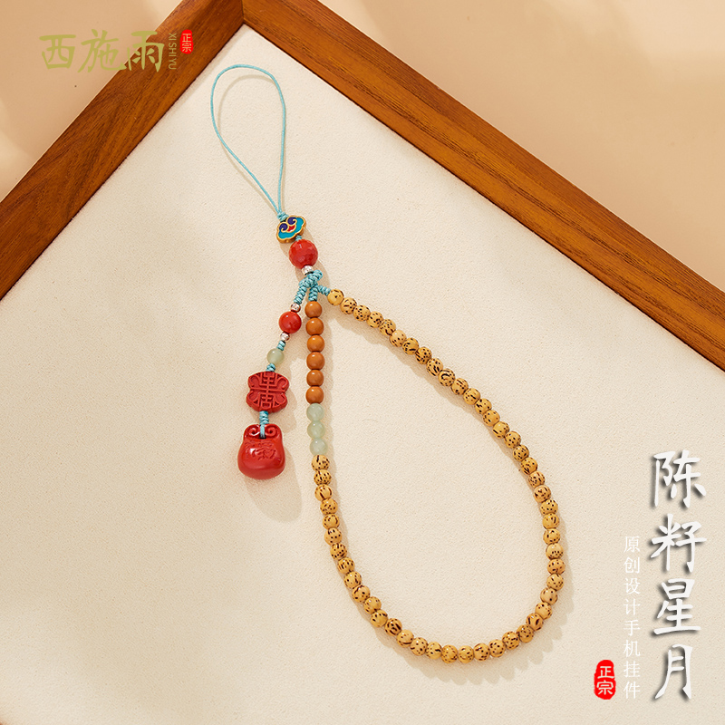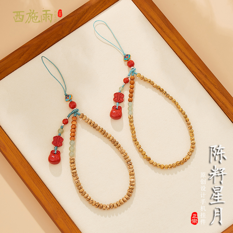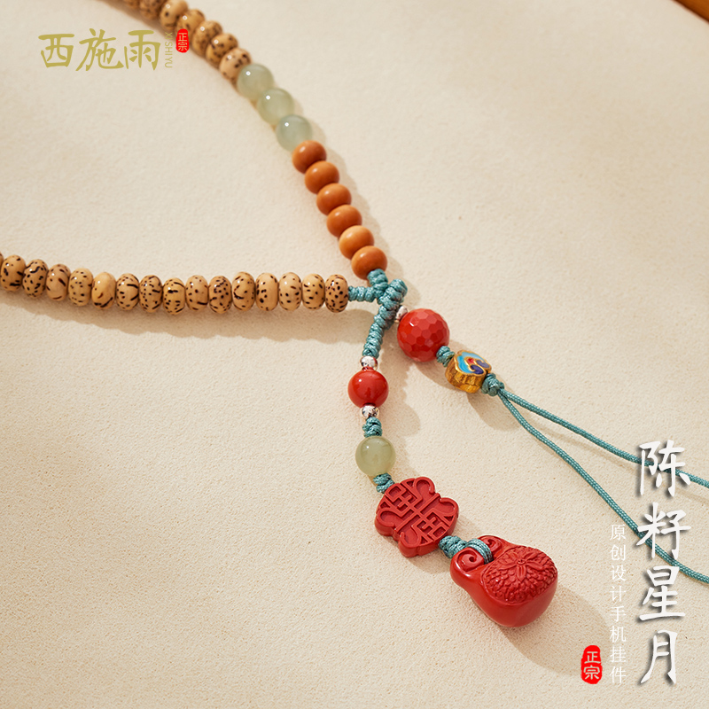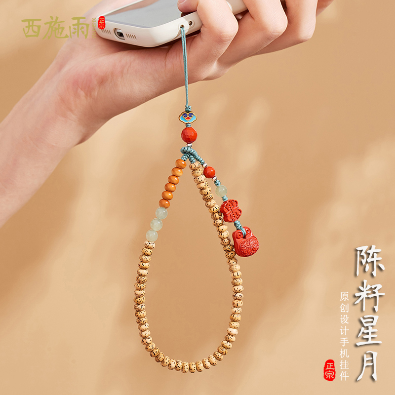 Chenzi Xingyue Bodhi mobile phone chain pendant Hetian jade wrist rope cinnabar lanyard U disk anti-lost pendant men and women