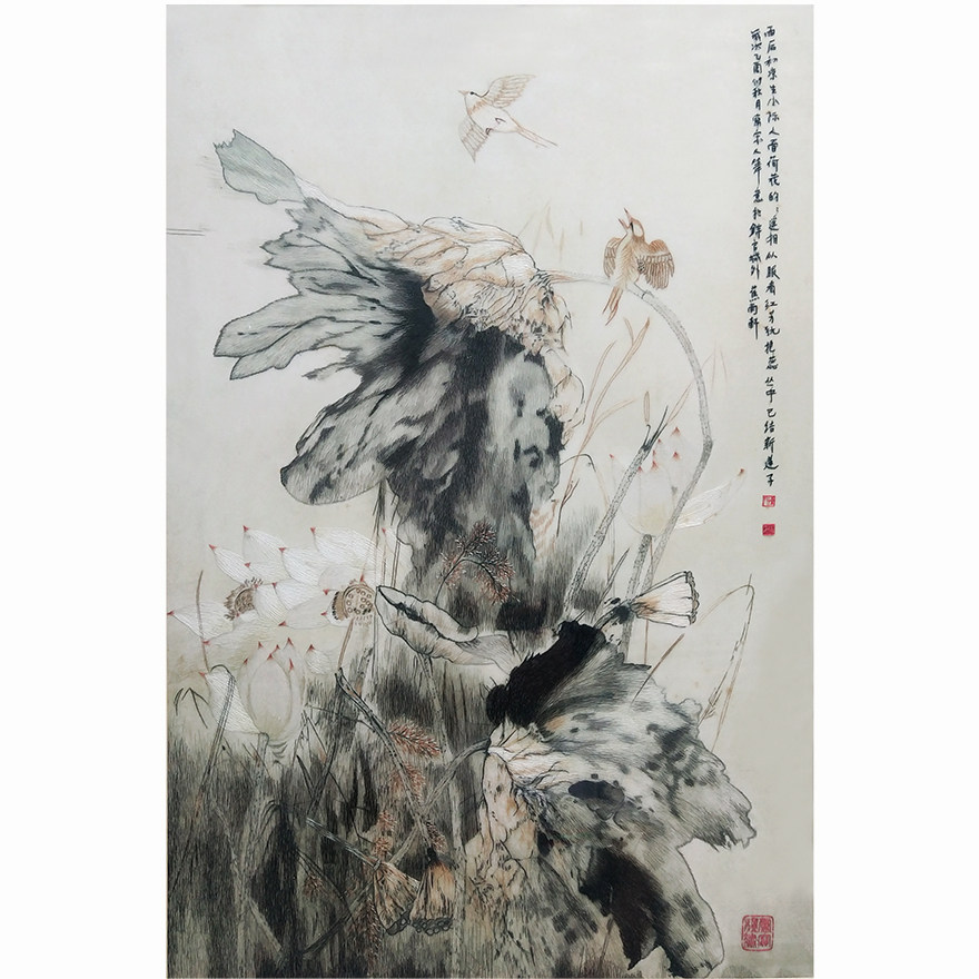Ingenious Su embroidery "Banana Rain Pavilion" Home Decoration Hanging Painting Embroidery Silk