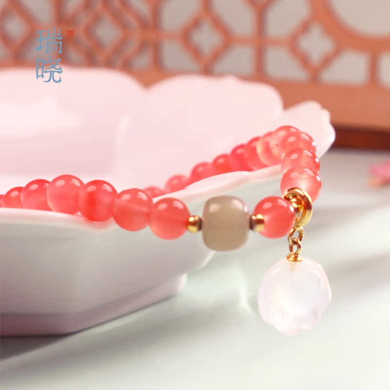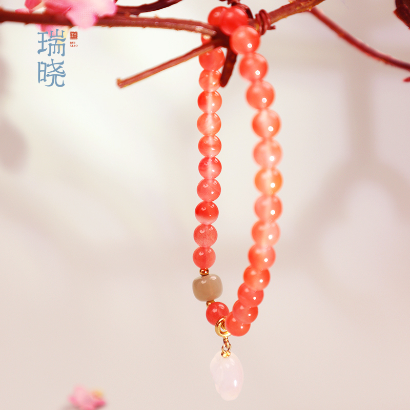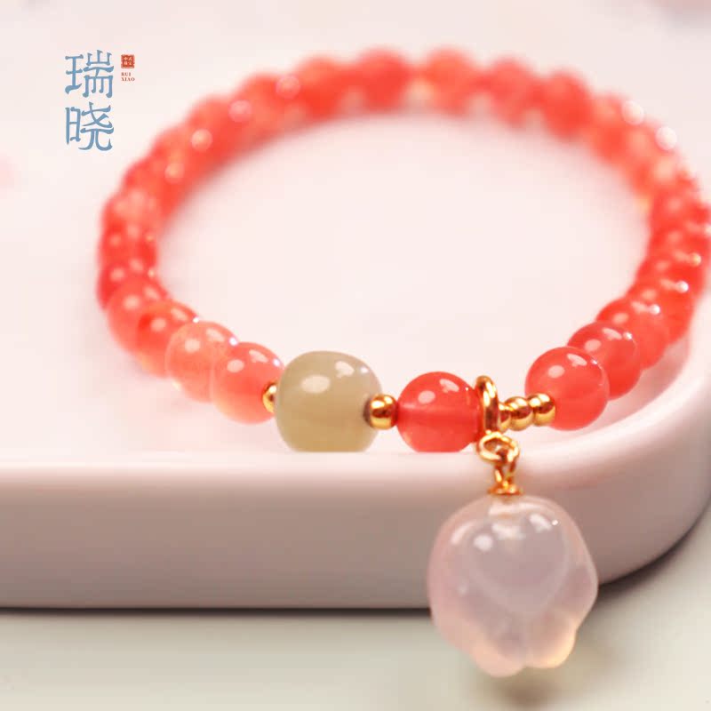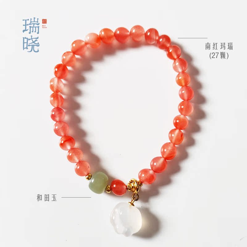 Ruixiao Fudge Cat Claw Natural Ice Floating South Red Agate Bracelet Women's S925 Sterling Silver Transfer Bead Bracelet