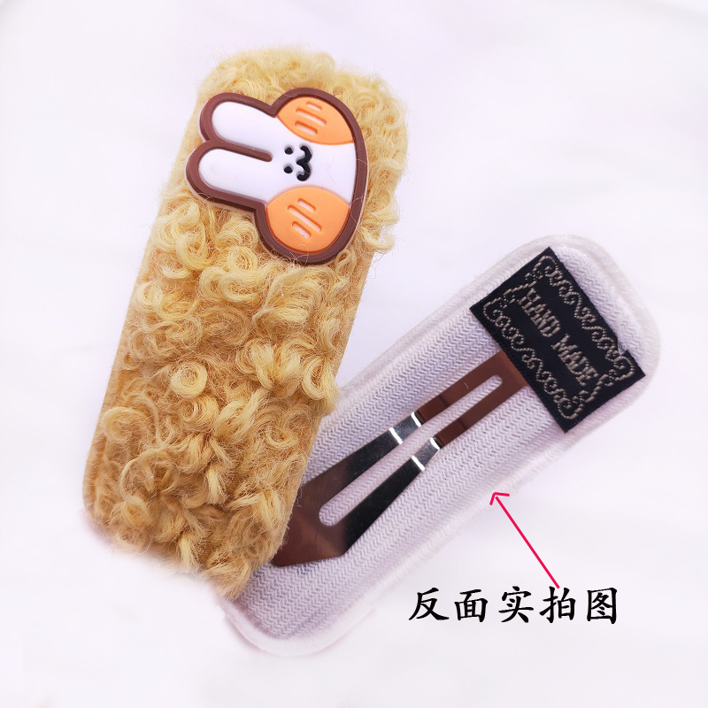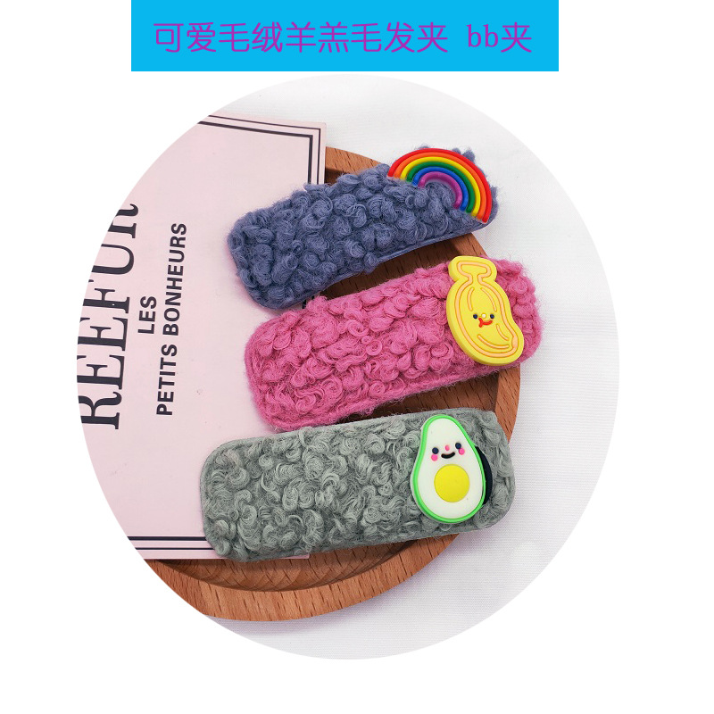 New in cute plush hair clip BB with mink wool side with a word card lamb clamp in autumn and winter headdress