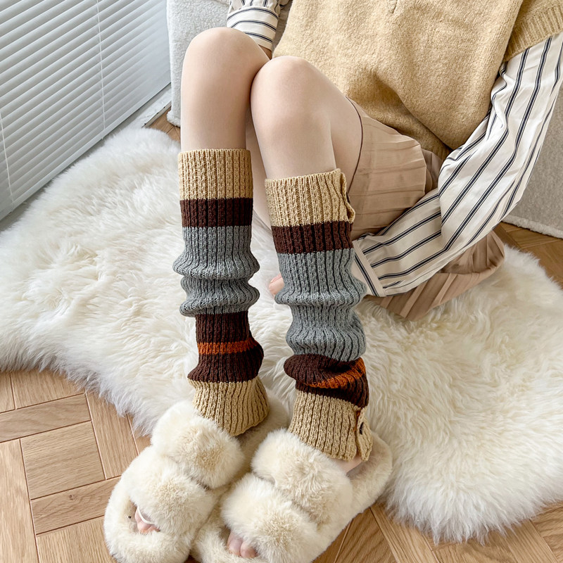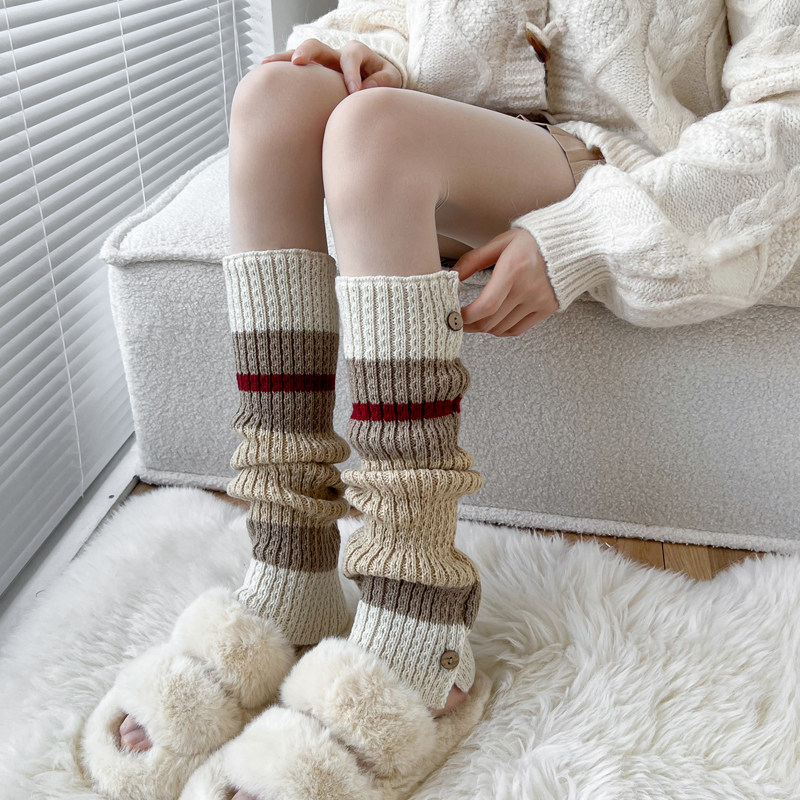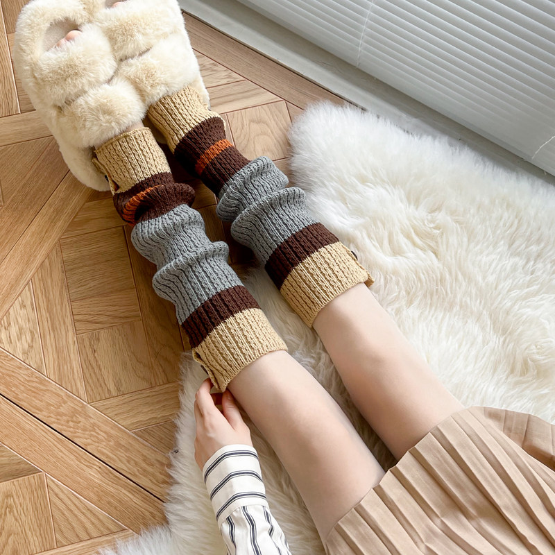 Autumn-winter thickened knitted sock cover warm heaps Sox carameses in colour Middle cylinder Sox rice white calf socks Korean version leg sleeve woman-Taobao