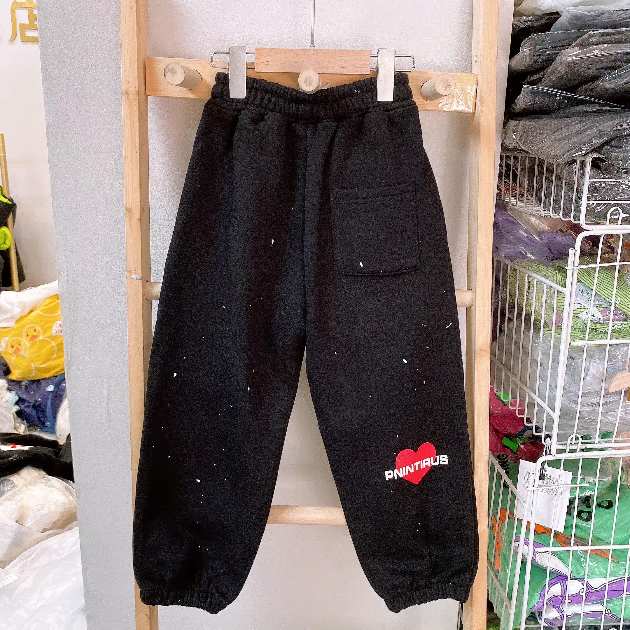 2022 new boys and girls plus velvet warm middle and big children's paint point sports knitting casual pants and pants 187121