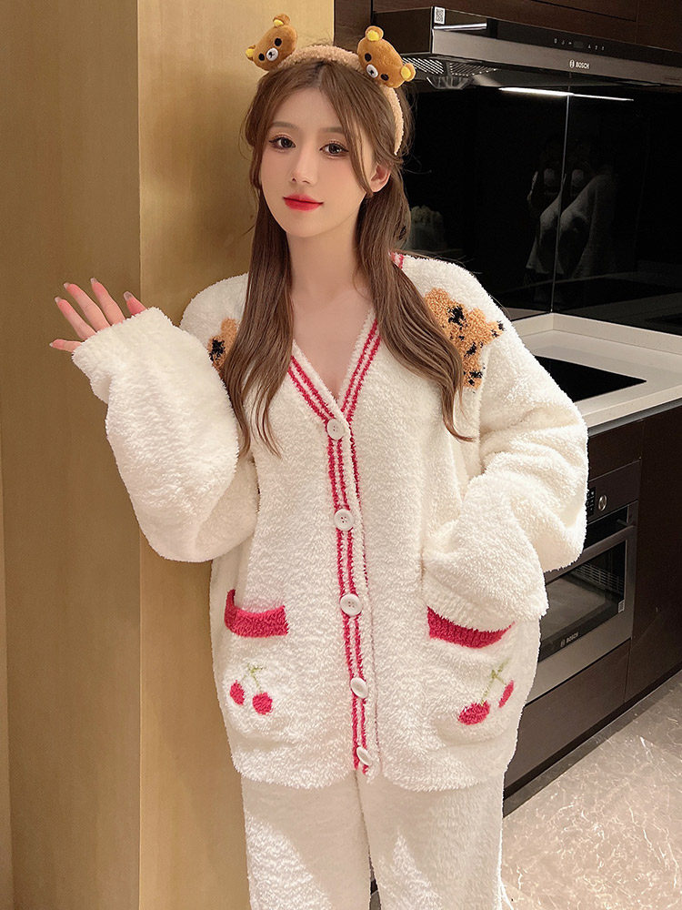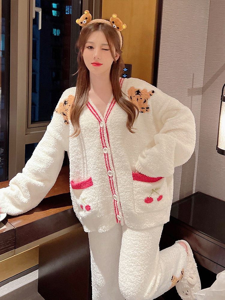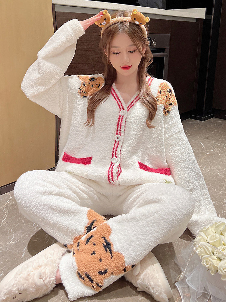 Soft pajamas suit lady autumn winter plus thick knitted jersey pajamas coral velvet tiger year sweater suit