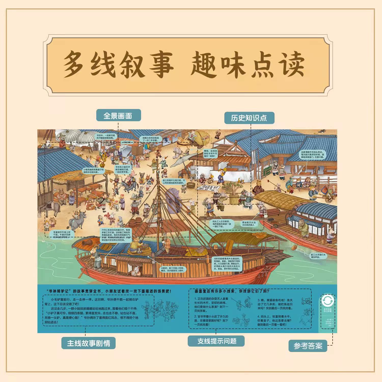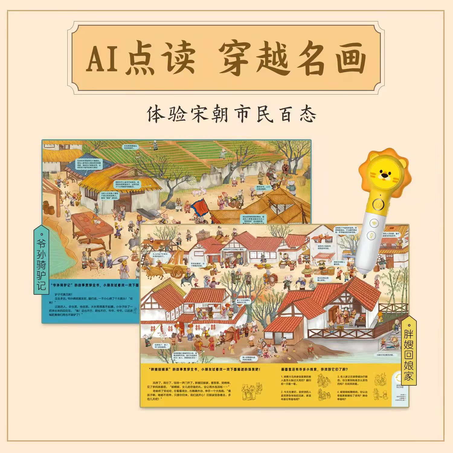 Fun Wei culture point reading picture book Qingming Shanghe map 2 books 2-8 years old thickened historical science encyclopedia supporting point reading