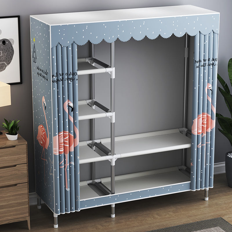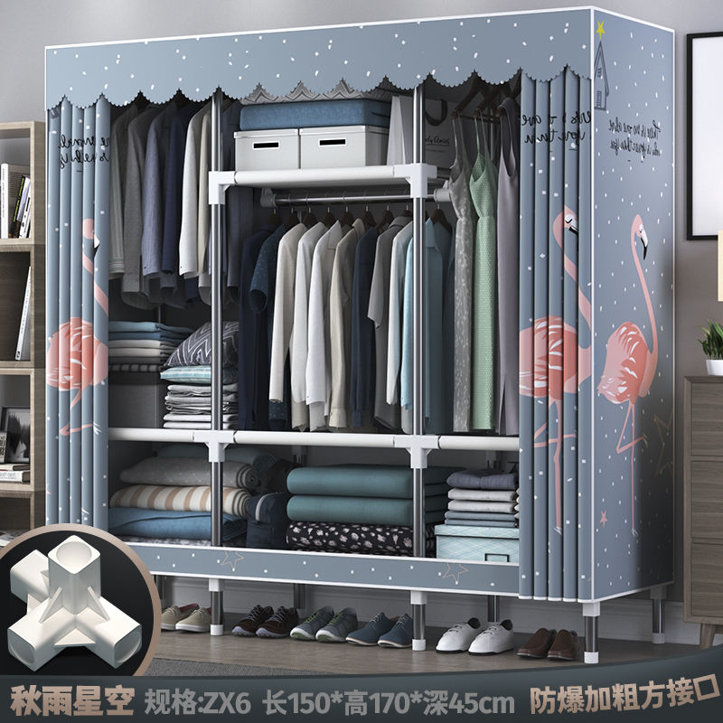 Wardrobe Simple Wardrobe Household Bedroom Cloth Wardrobe Rental Room Assembly Storage Cabinet Steel Frame Bold Thickened Durable