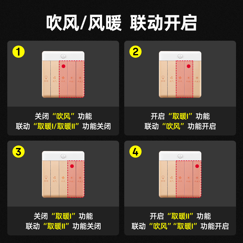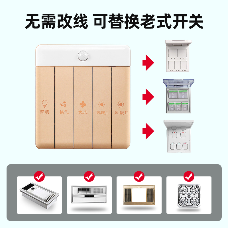 Bath Bully Light Switch Five Open Bathroom Toilet Warm Blower Switch 5 Open Five-Fit Around Body Inductive Light Switch