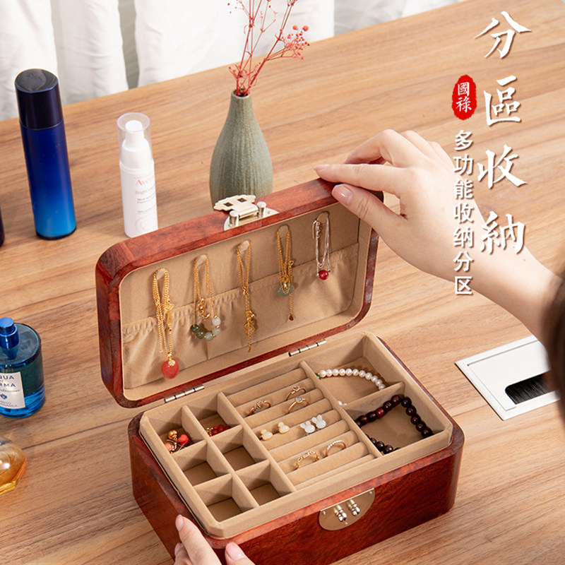 Flowers Pear Wood Solid Wood First Decorated Box Refined Containing Box High-end Chinese Style National Wind 2023 New Wedding Belt Lock Gift Woman-Taobao