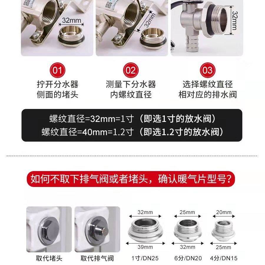 Heating water discharge valve geothermal 1 inch 6 min exhaust valve household copper 32 heating water drainage