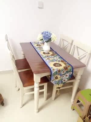 American country European style retro Mediterranean ins style table flag tablecloth tea mat Blue Sunflower length custom-made