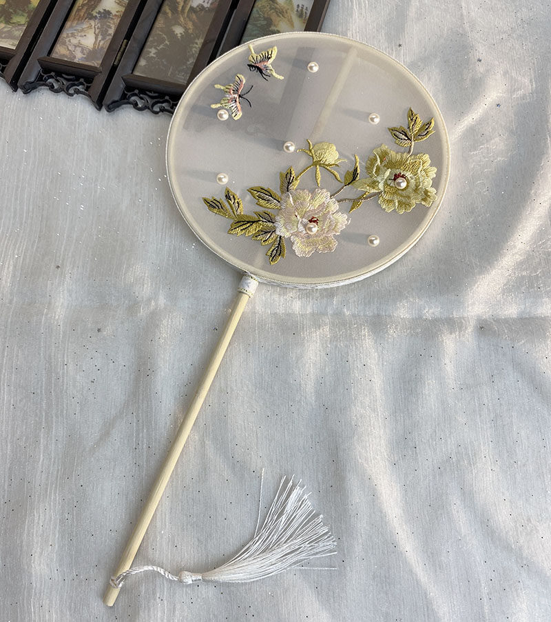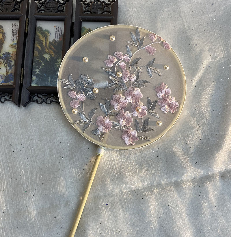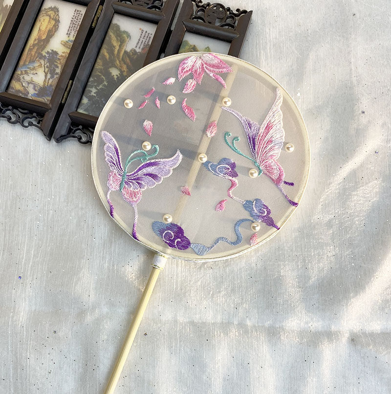 Children's ancient fan fan embroidered fan palm embroidered walking dance fan long handle small fan