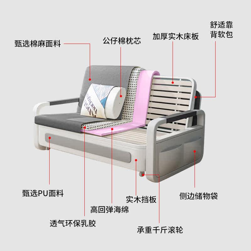Sofa bed folding dual-use small apartment simple multi-functional storage push-pull living room single double 1 8 meters sofa