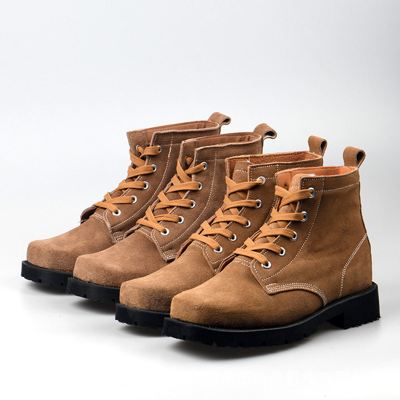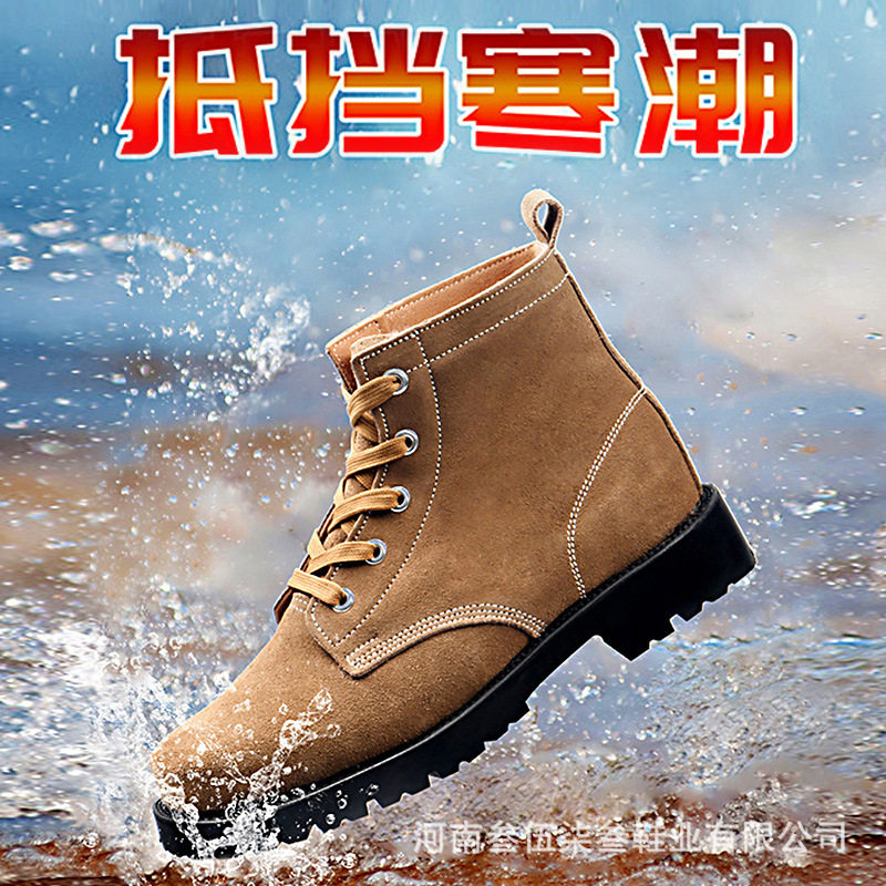 Winter steel toe wool cotton boots fur one snow boots men's suede leather thick bottom cotton boots men's labor protection shoes tooling boots