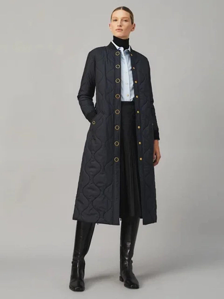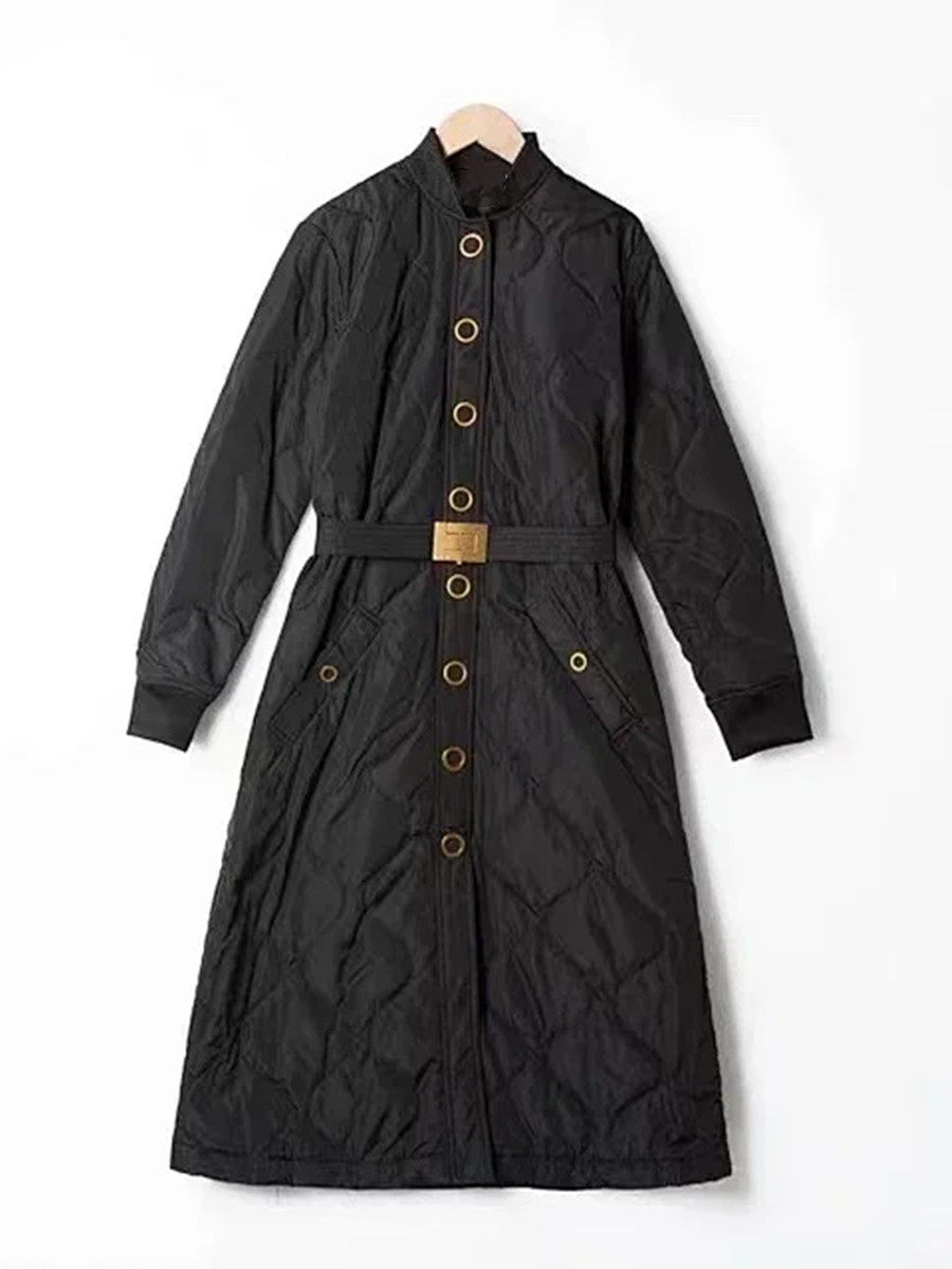 TB cotton coat diamond loose metal button with thin straight tube leisure and long female coat