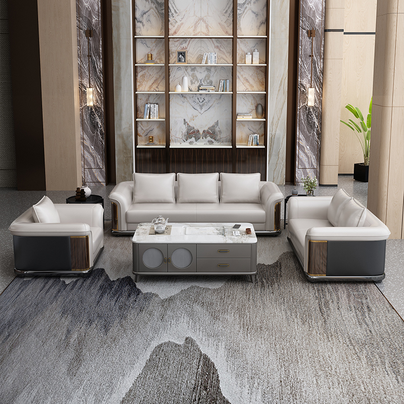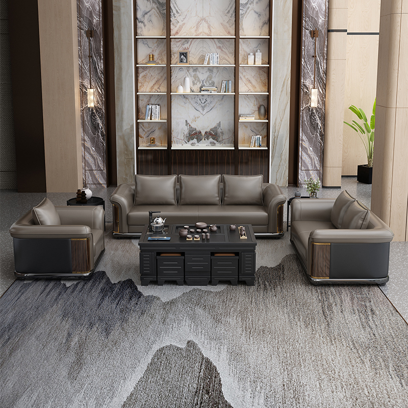 Italian Light Luxury Leather Office Sofa American style Villa Tea couch combined triple sofa