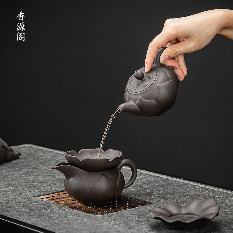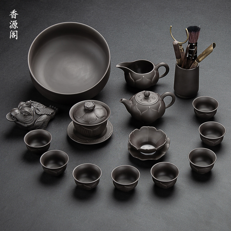 Purple Sand Kongfu Tea Suit Home Office guest Jingdezhen teapot tea cup lid bowl Chinese upscale gift box dress-Taobao