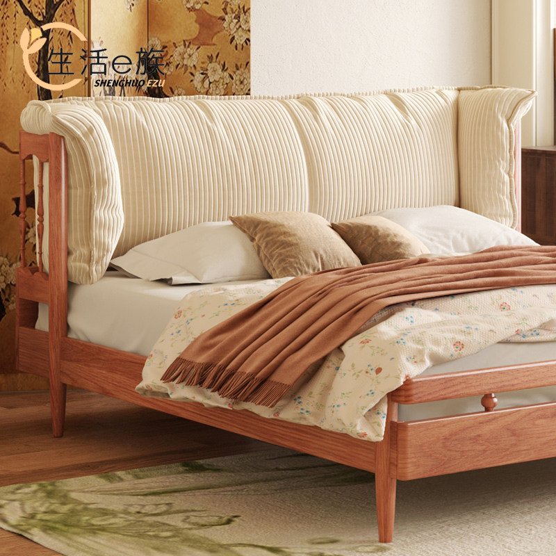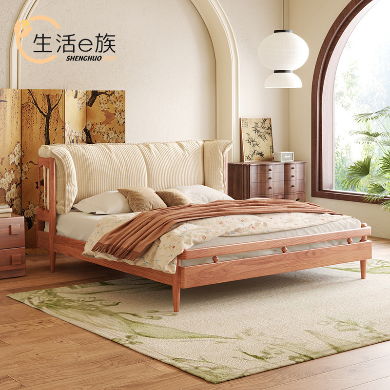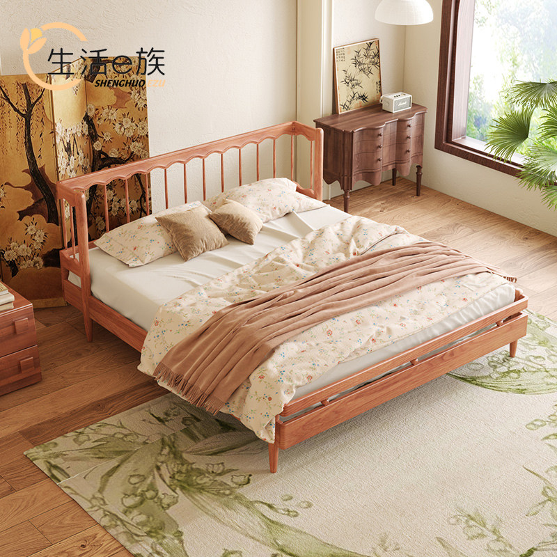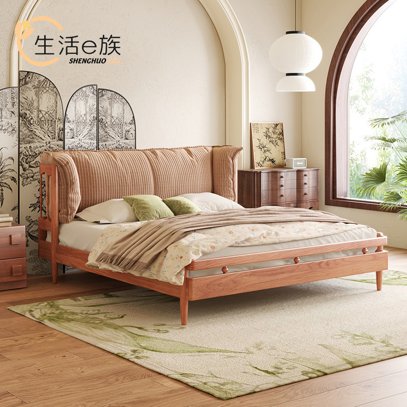 Life E family cherry solid wood Nordic log wind double bed small apartment master bedroom net red retro wabi-sabi soft lean