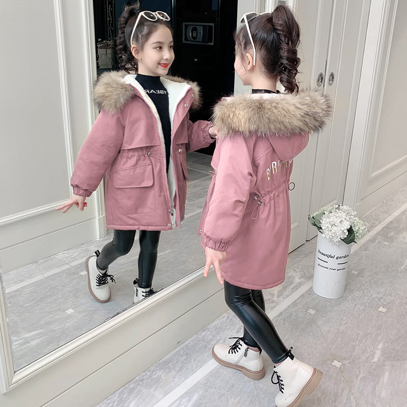 Girl Pie overcomes the coat winter dress 2023 new children's gas cotton clothes plus thickness medium and long duvet cotton