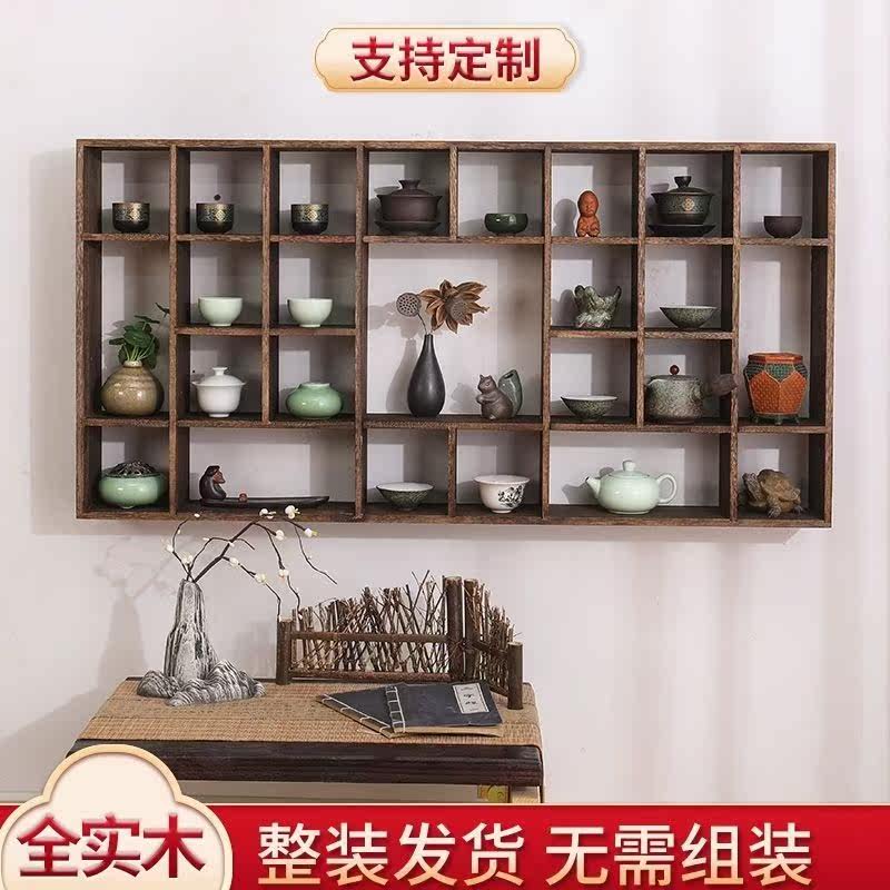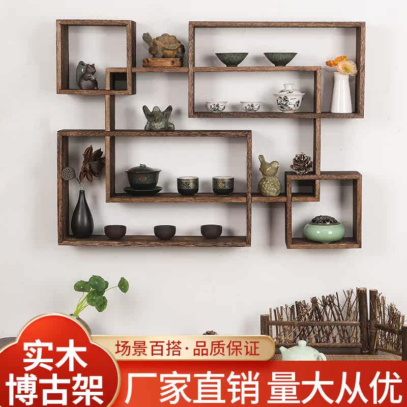 Burning Tongbo ancient rack Duobaoge display rack solid wood Chinese modern wall-mounted tea rack rack wall-mounted simple