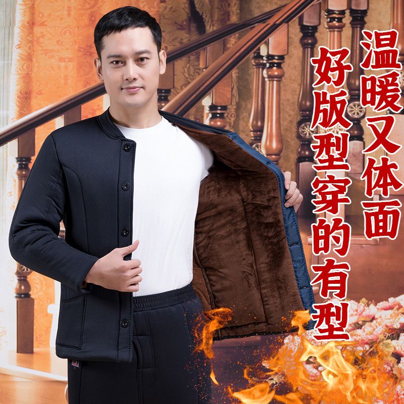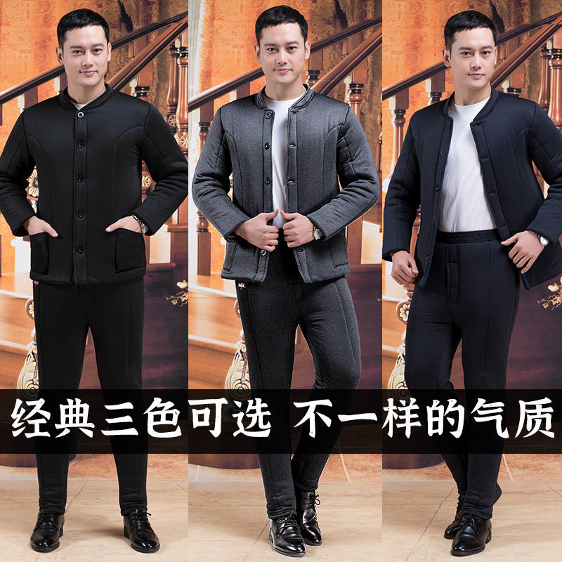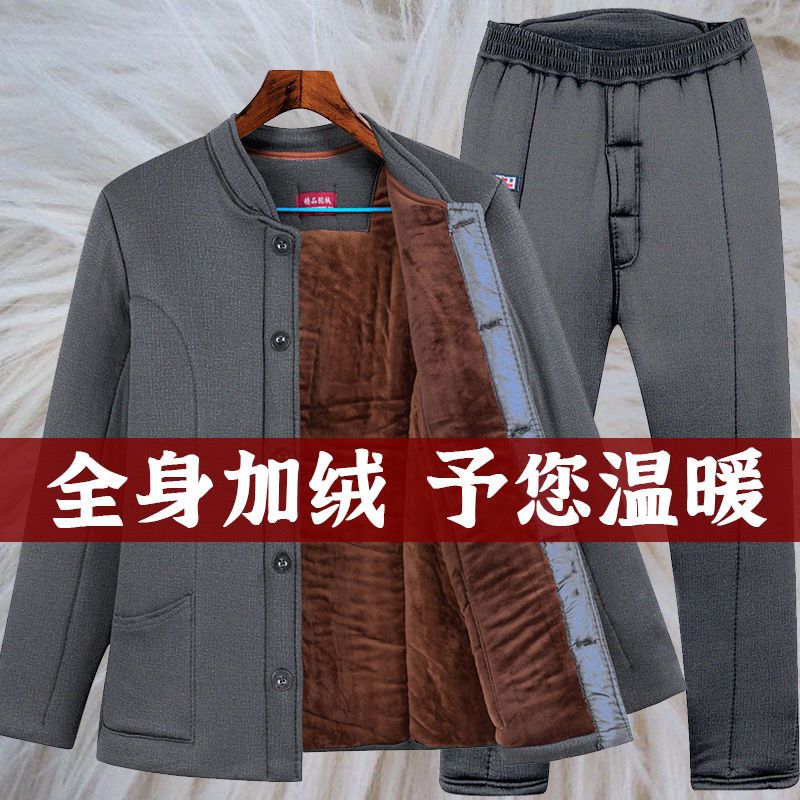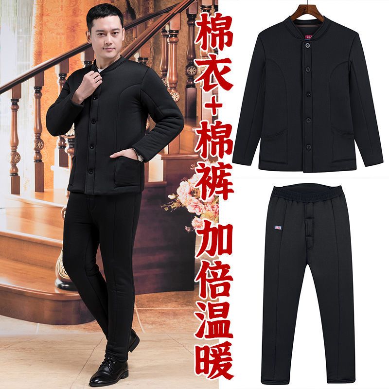 Cold-proof cotton-padded trousers suit dad cotton-padded jacket cotton-padded trousers plus velvet thick middle-aged and elderly winter warm cotton-padded home clothes