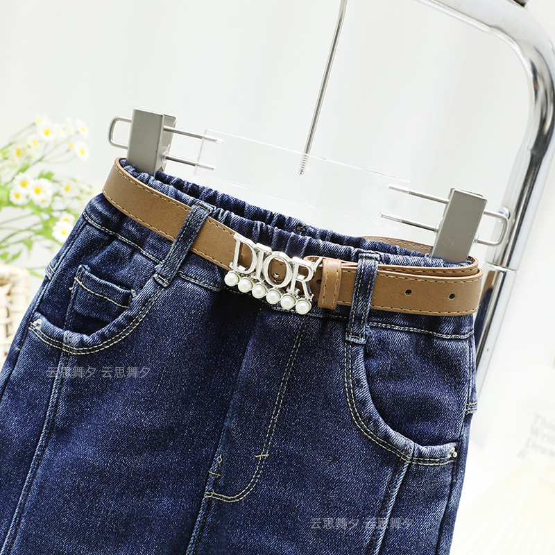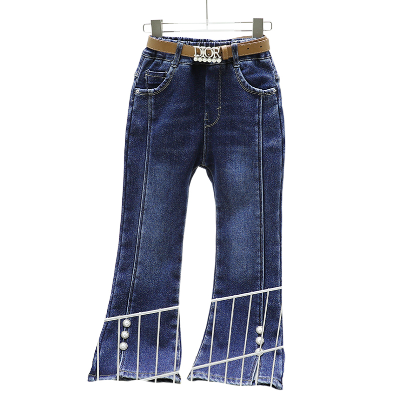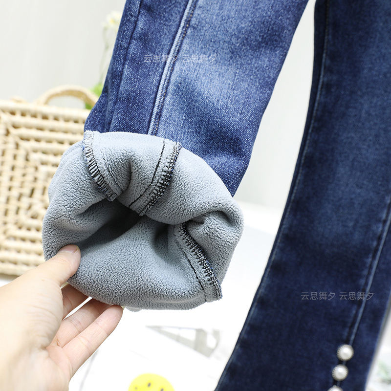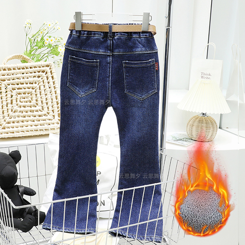 2022 Autumn Winter New Children Elastic Pants Girl Foreign Gas Plus Suede Horn Pants Girl Han Version Thickened Jeans