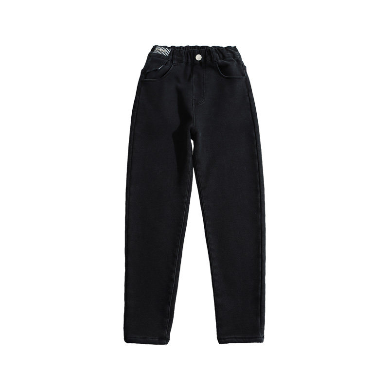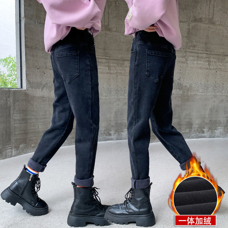 Girl Plus Suede Pants Spring Autumn 2023 New Season Children's Jeans Straight Drum Large Child Black Winter Tide Soft Thick-Taobao