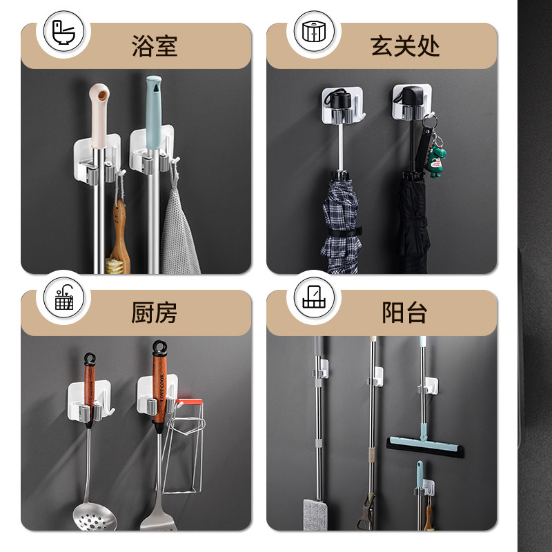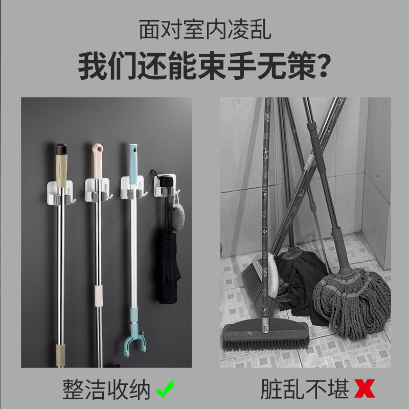 Gun Ash Mop Clip Hooks Toilet Free of perforated wall Contained Stainless Steel Sweep remove Cloth Hanging Rack Wall-mounted 1763-Taobao