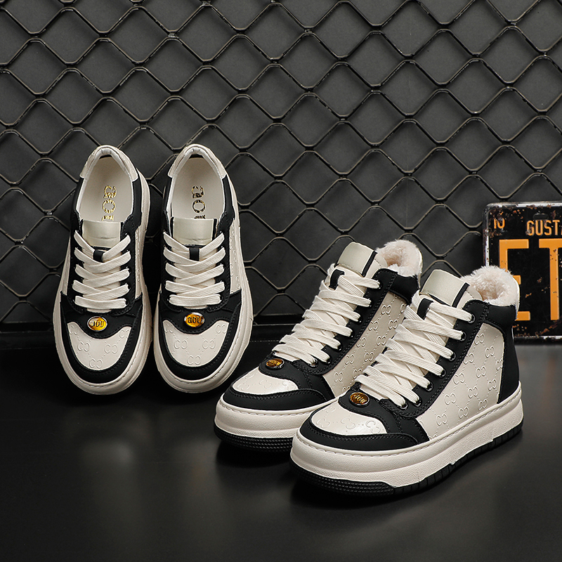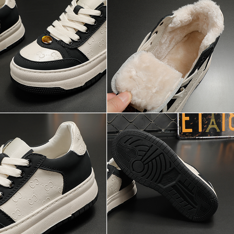 Black and white single shoes black and white high-top shoes with fleece single shoes with fleece high-top shoes