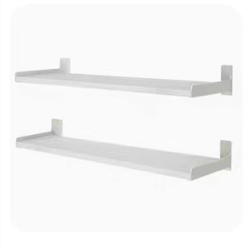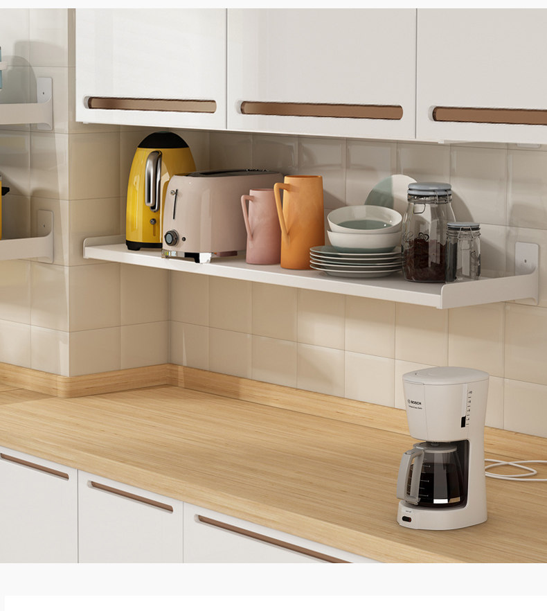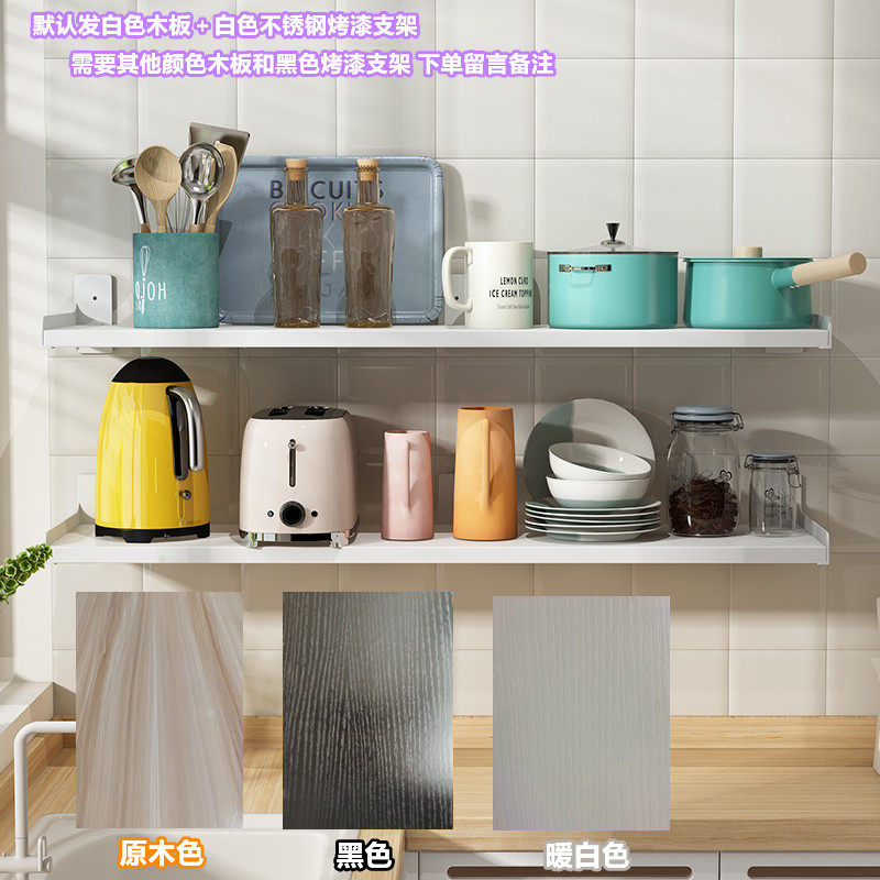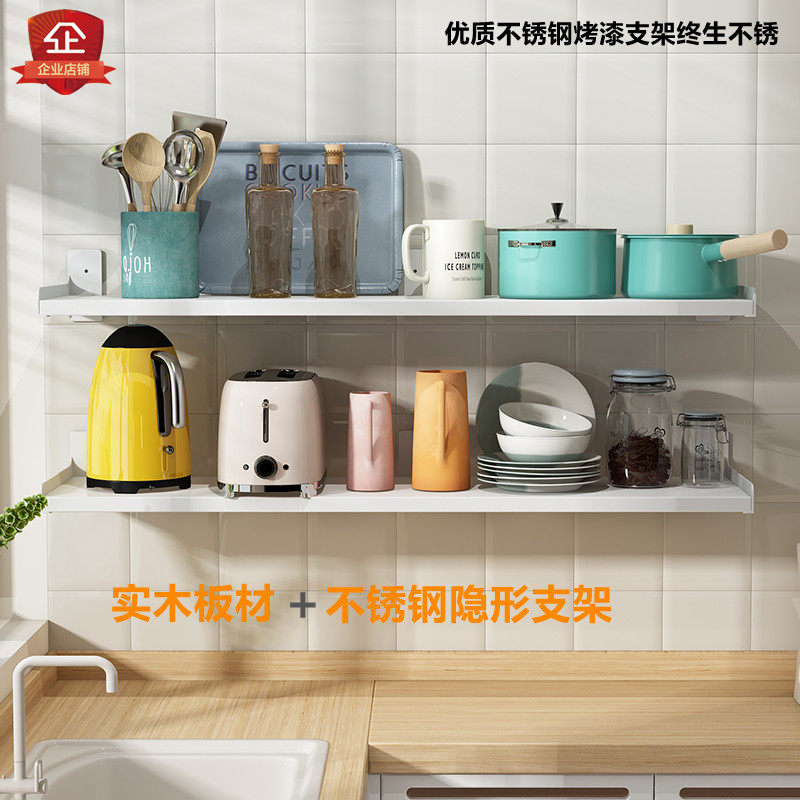 Stainless steel kitchen spice rack white partition shelf wall hanging free punching wall storage solid wood one word partition - Taobao