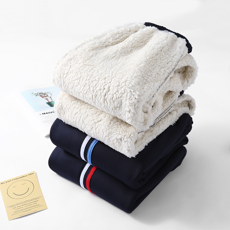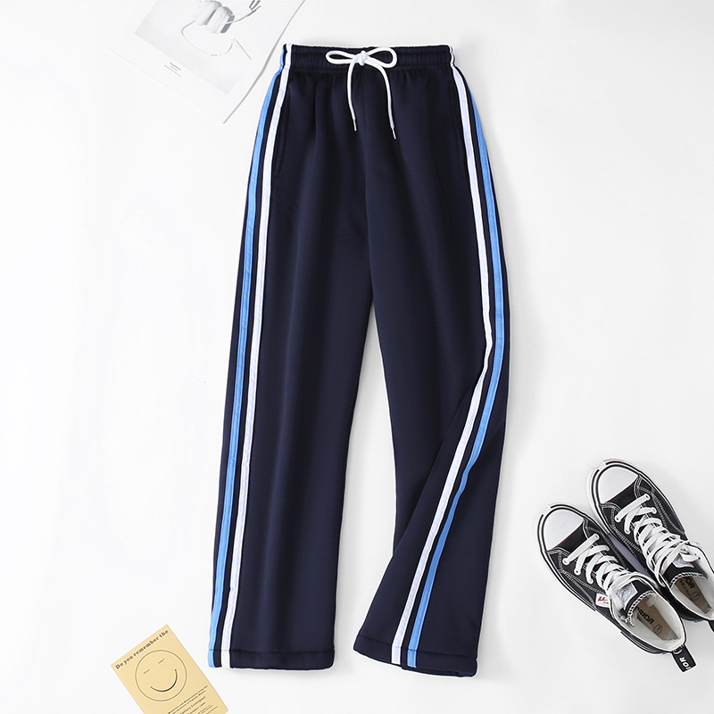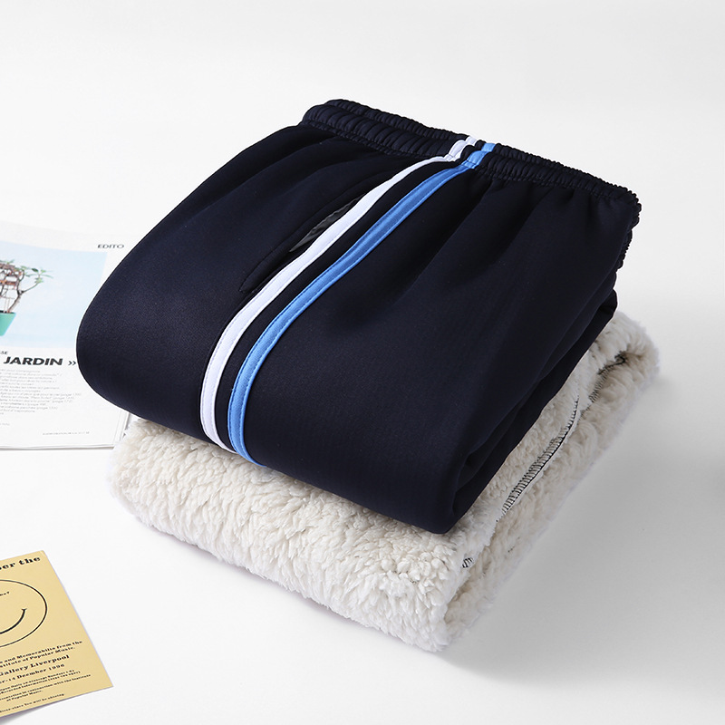 White and blue striped school uniform pants male and female high school students two bars Tibetan blue primary school students plus velvet thickened two bars school pants