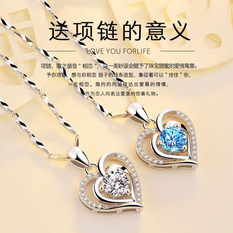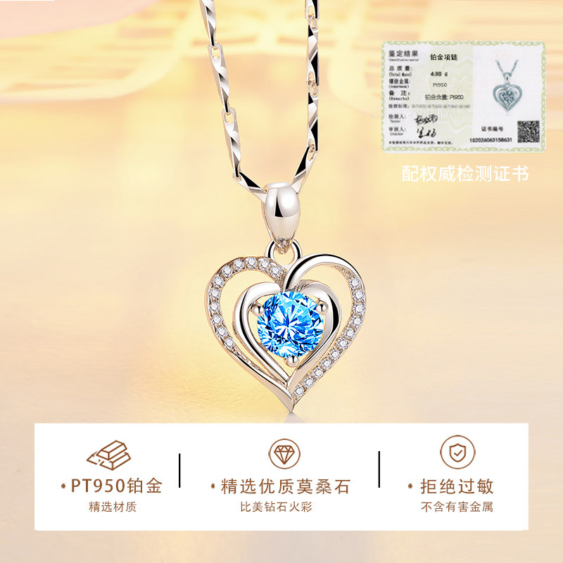 Ocean Heart Pt 950 Platinum Necklace Light Luxury Platinum Valentine Christmas Birthday present to Give Girlfriend