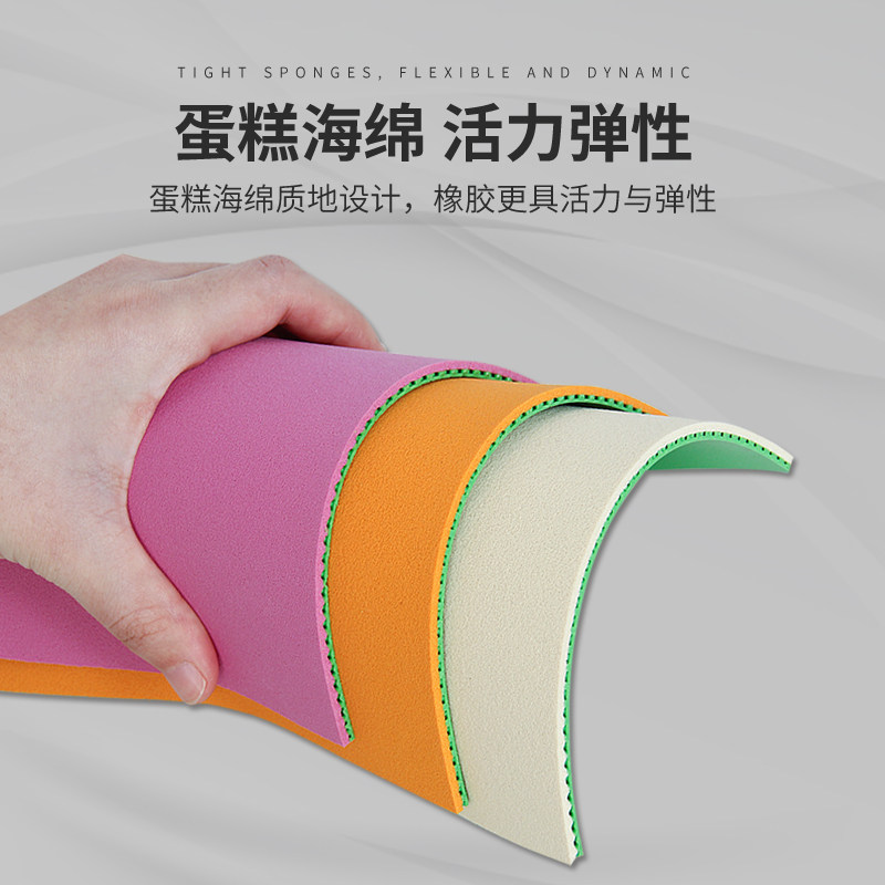 Thick sponge (high stamina) Thin sponge (fast hitting) Hard sponge (fast attack type) Soft sponge (ball control type)