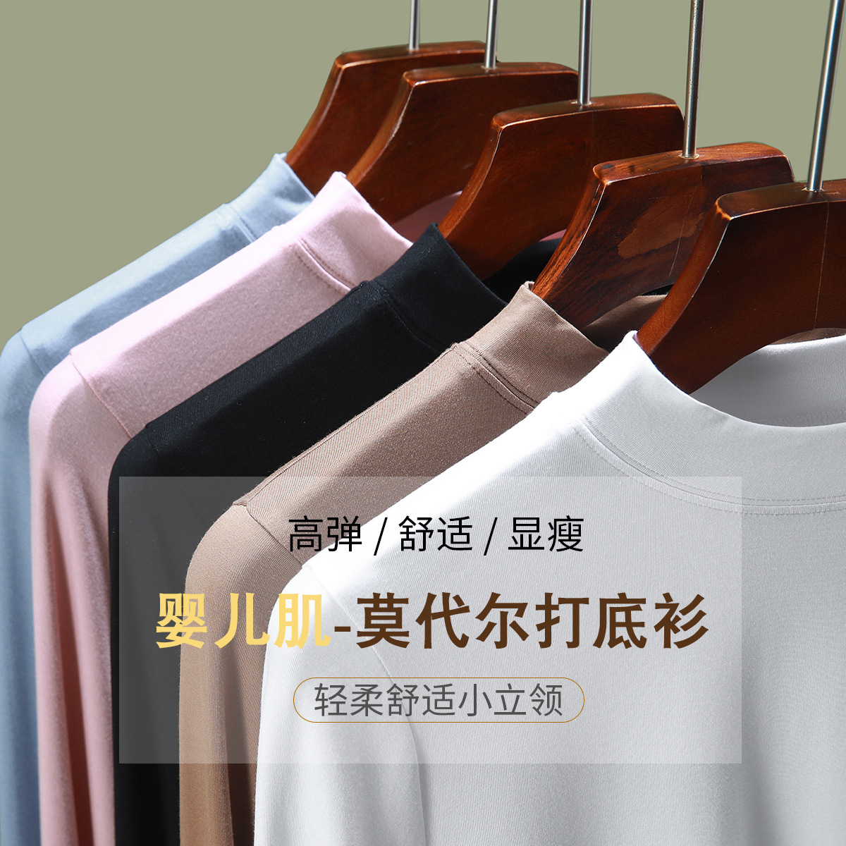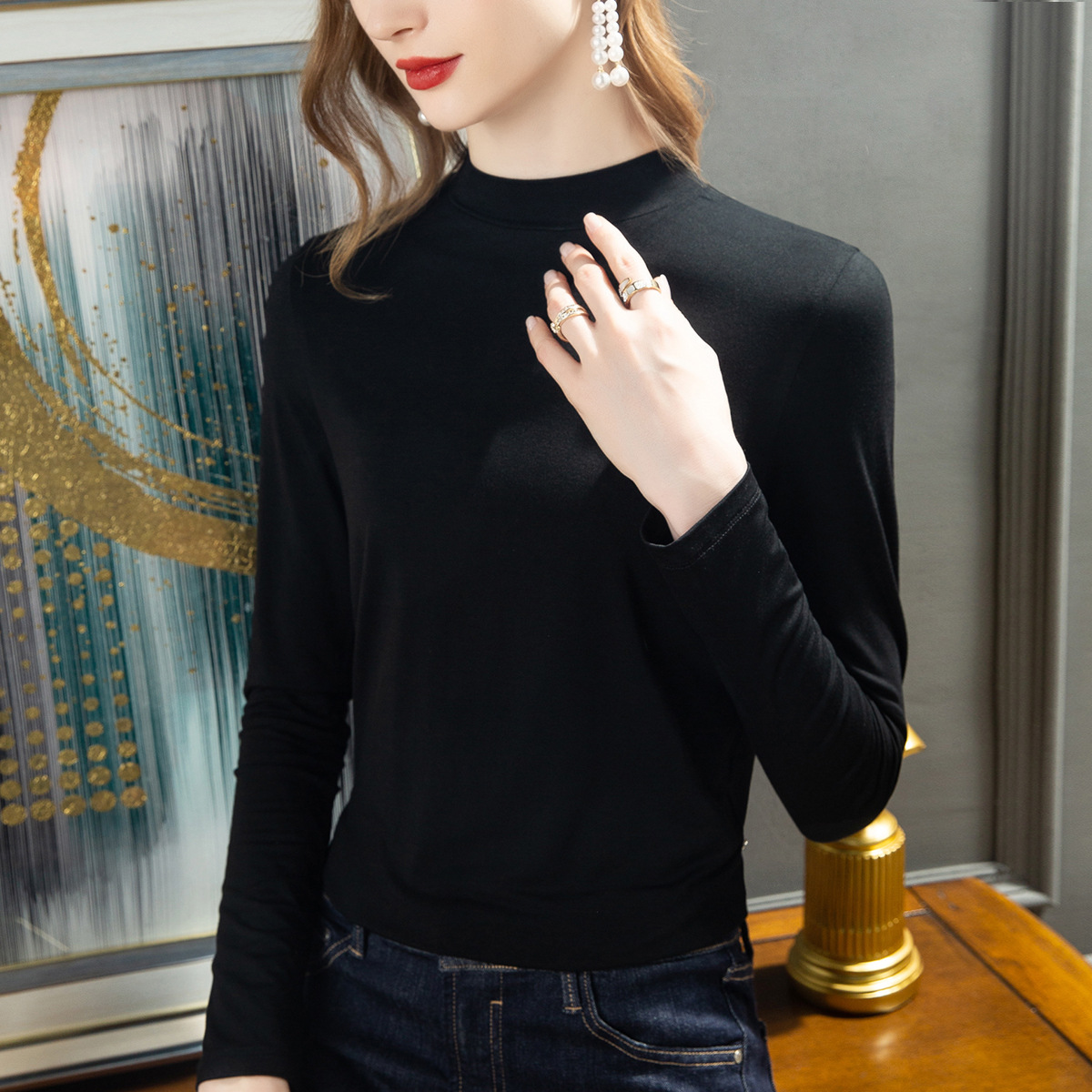 Spring, autumn and winter new half-high collar top slim fit bottoming shirt student Korean version with ins long-sleeved t-shirt female
