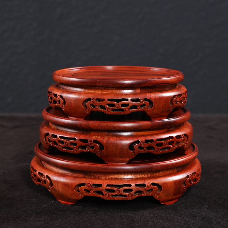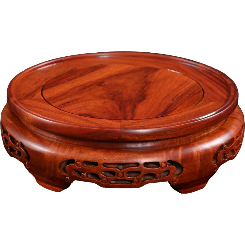 Red Wood Vase Base Solid Wood Circular Stone Pendulum Plant Flower Pot Buddhist Wine Vat Teapot Handicraft Base Bay-Taobao