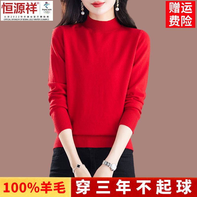 Hengyuan Xiang Caixiang sheep wool sweater 100 pure wool autumn and winter half high collar black sweater loose cashmere beating undershirt-Taobao