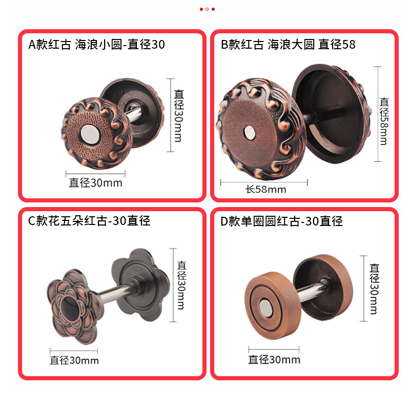 A Red Ancient Wave small round-diameter 30B Red Ancient Wave Large Circle Diameter 58C Flowers Five Red Ancient -30 Diameter D single ring Round red Ancient -30 diameter E Red Ancient Square-Long 8