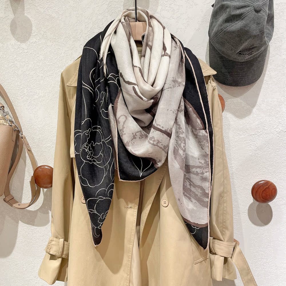 New light luxury silk scarf female autumn silk wool large towel keeps warm shawl two-use girl gift mother