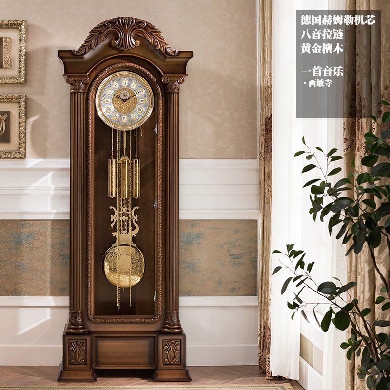 German Hermler import machine core floor clock living room luxury solid wood carved European style mechanical large standing bell-Taobao