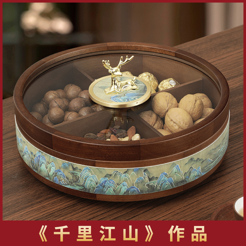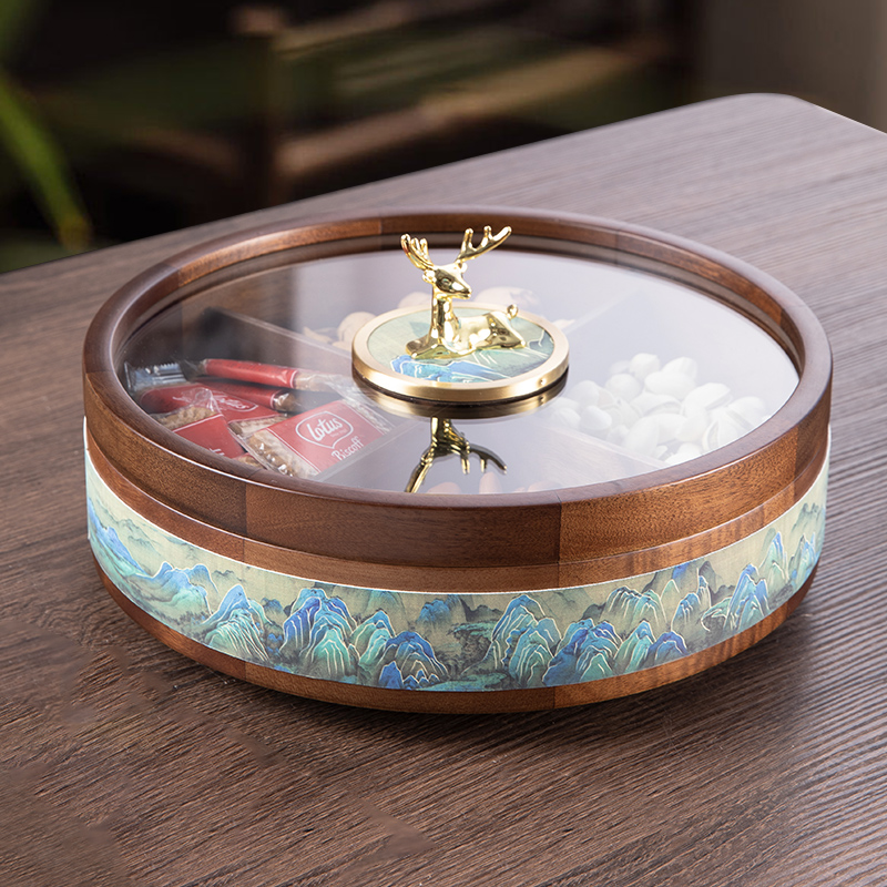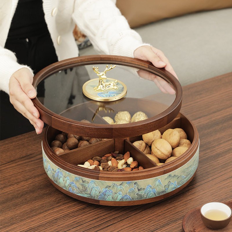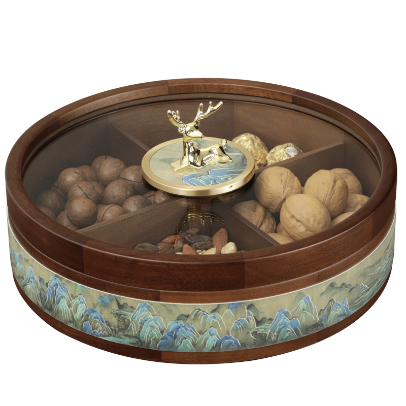 New Chinese Solid Wood Confectionery Fruit Pan Light Extravagant Upfront Living Room Tea Table Swing Piece Home Dried Fruit Box Containing Nut Box-Taobao