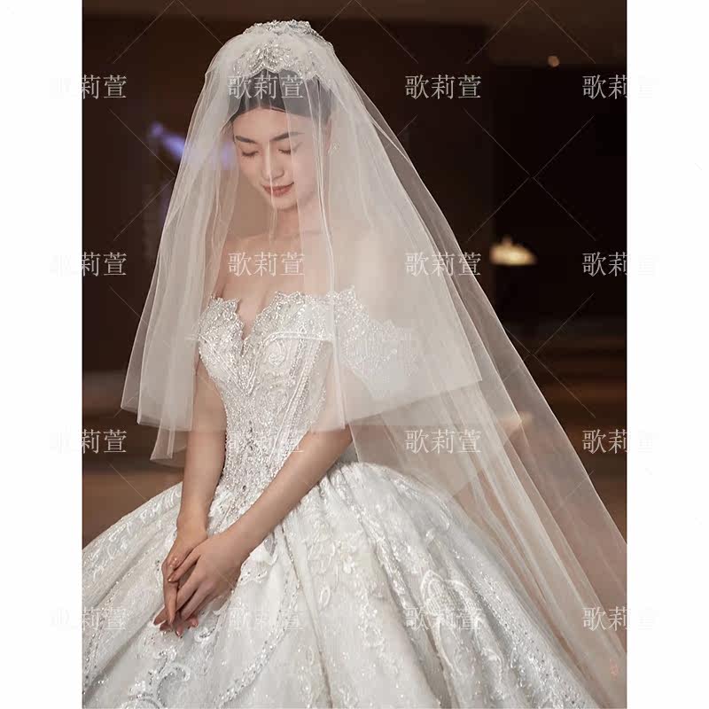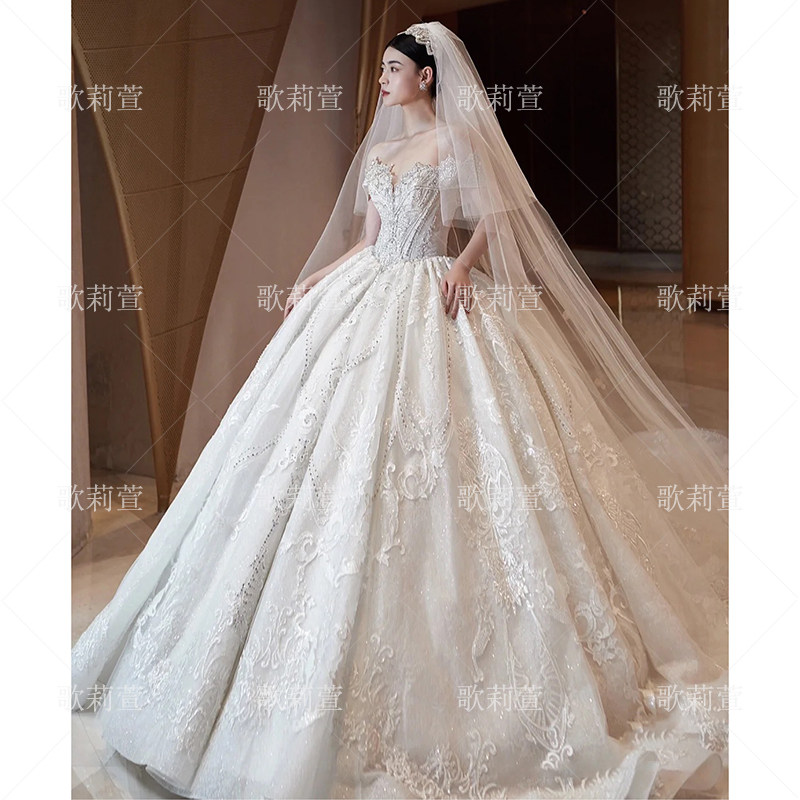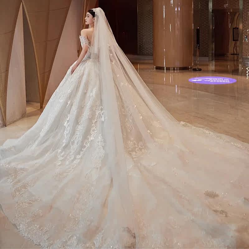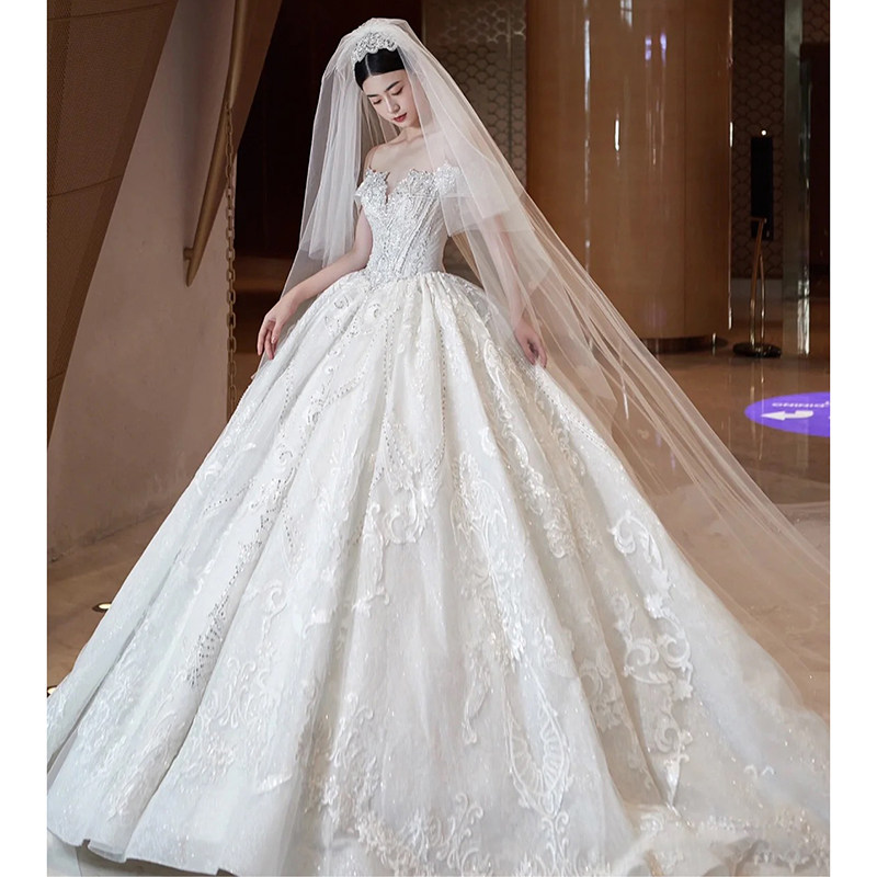 A word shoulder wedding dress 2023 new bride small master yarn luxury retro court wind drag