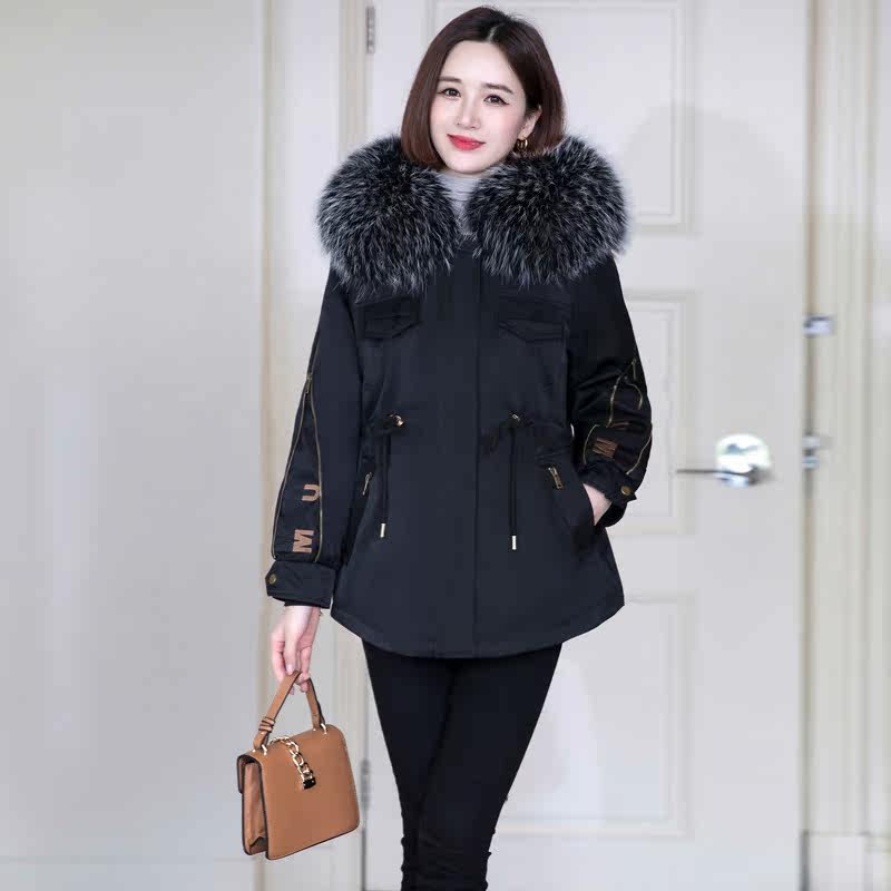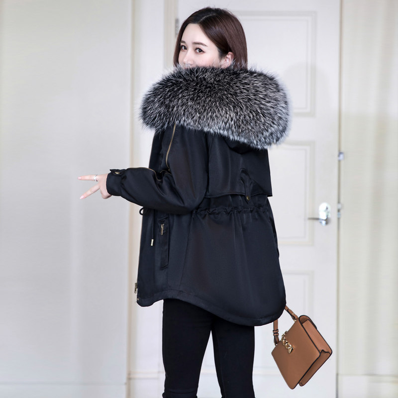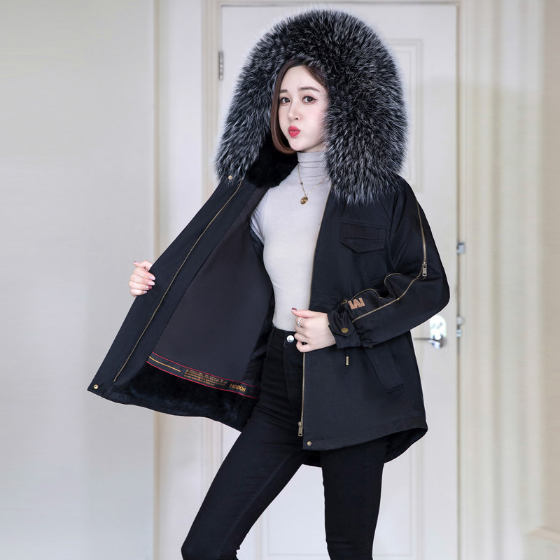 2022 new style rabbit fur liner detachable hooded thickened warm large fur collar winter fur coat pie overcome women