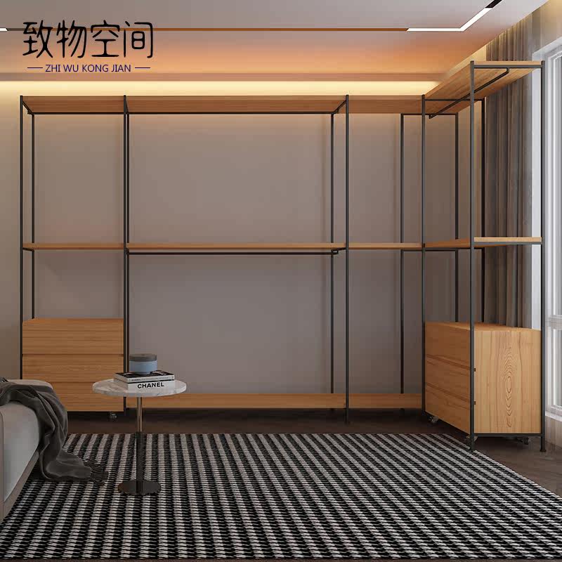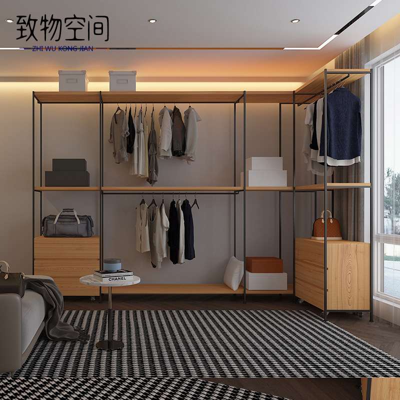 Modern minimalist open coat rack creative solid wood floor rack household clothes rack industrial wind shelf