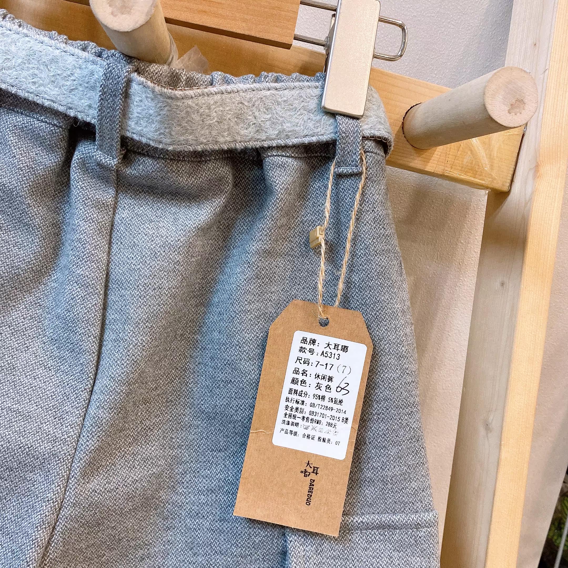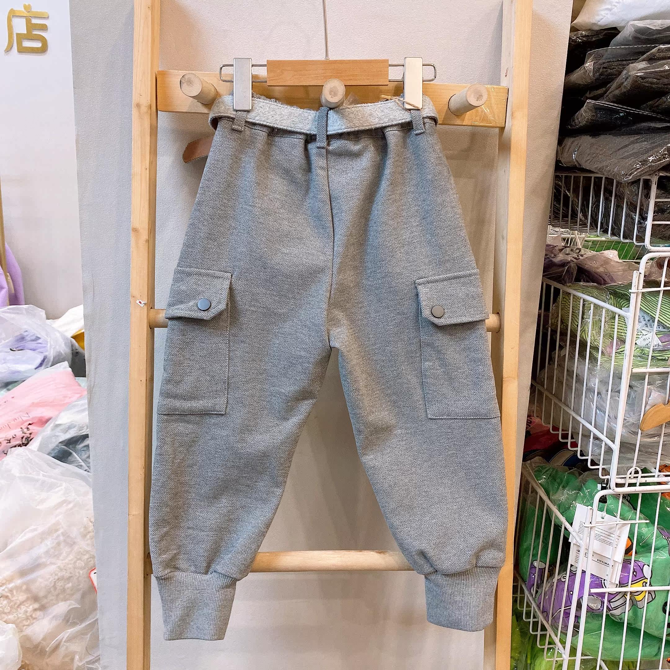 Big-eared autumn and winter children's middle and big children's pocket tooling thin fleece sports bundle feet knitted sweatpants 5313