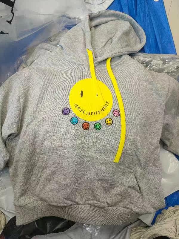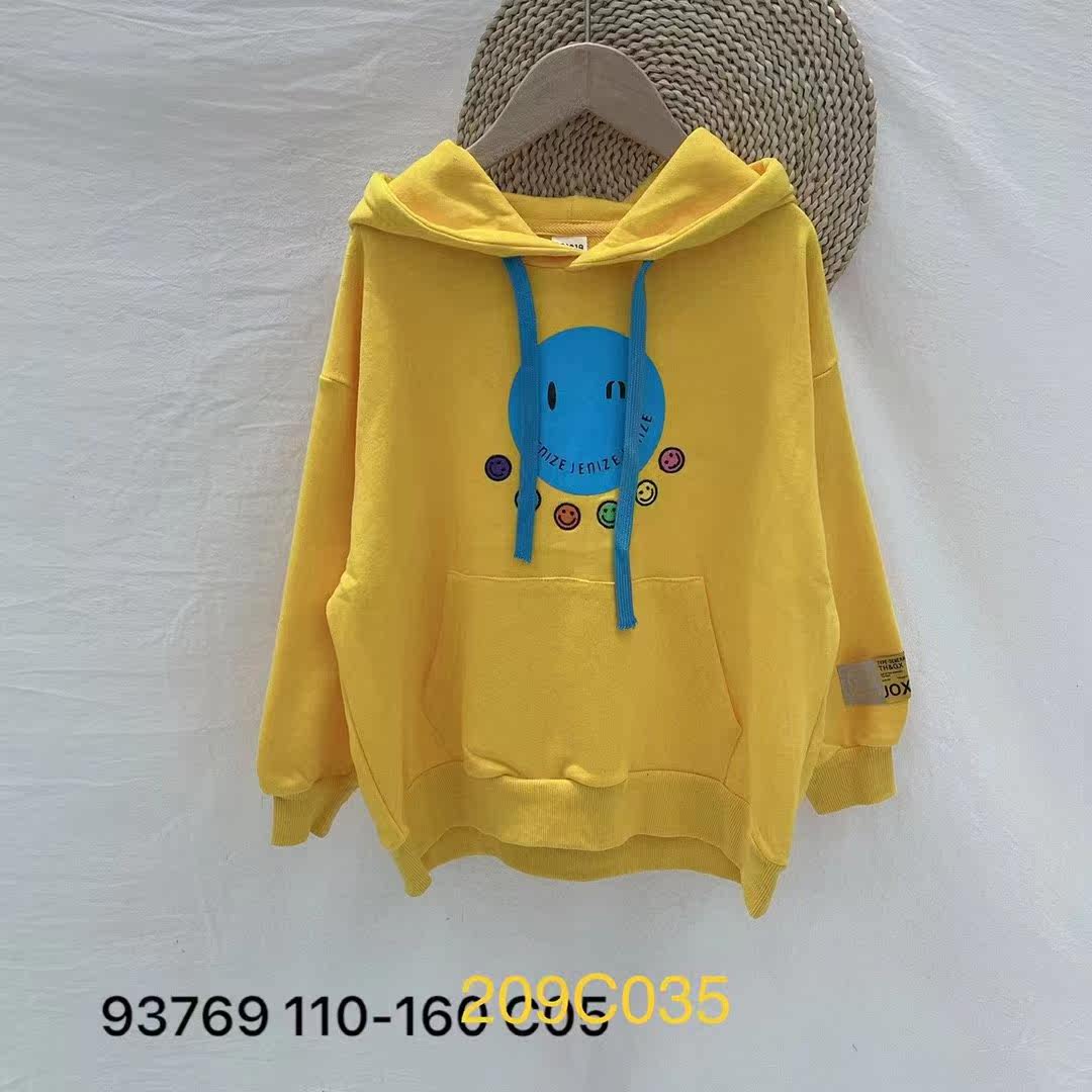Papaya Z brand spring and autumn terry children's middle and big children loose smiling face printed hooded sweater pure cotton 93769
