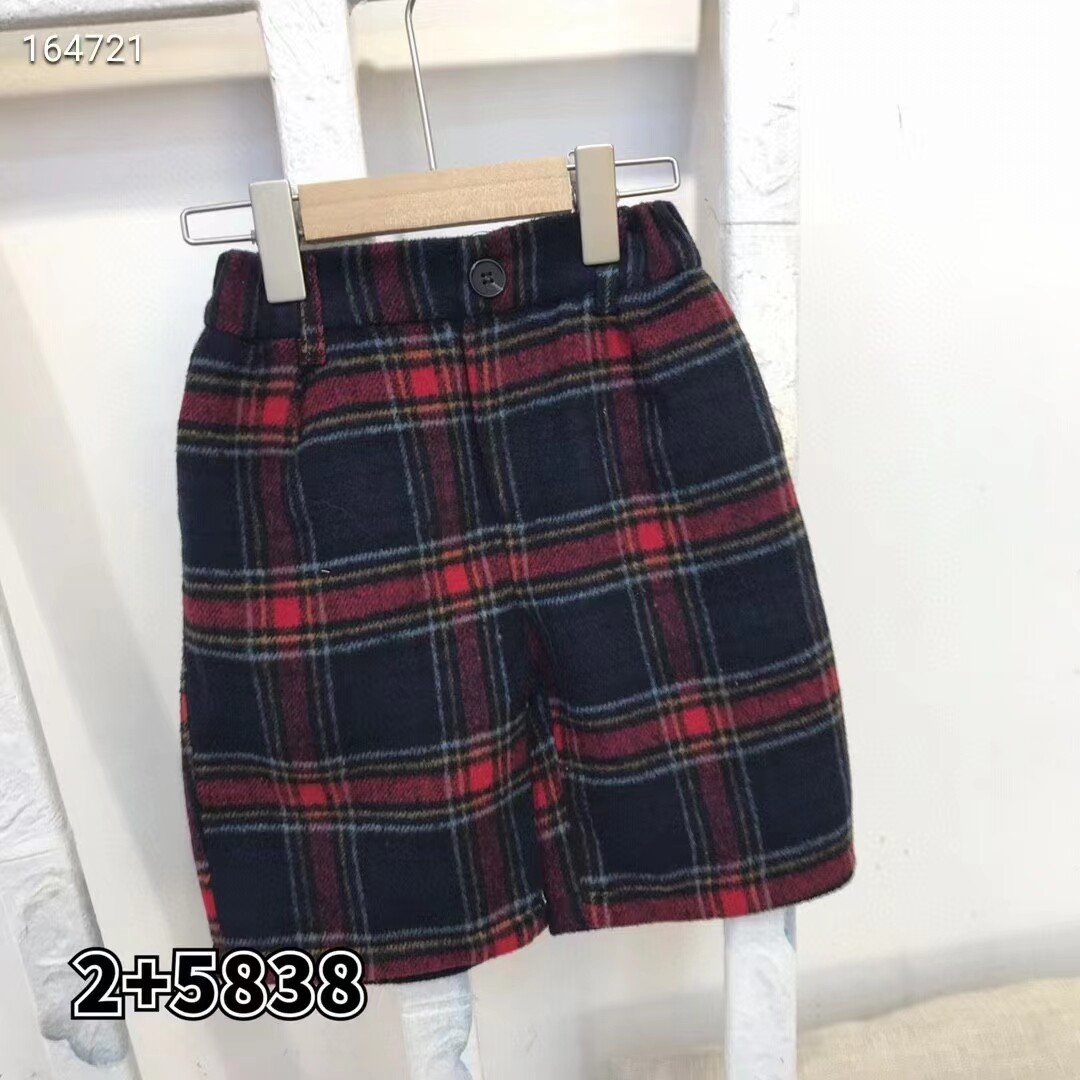 Niuduoduo winter children's middle-aged and older children's woolen casual plaid outer wear slim straight five-point pants 35838