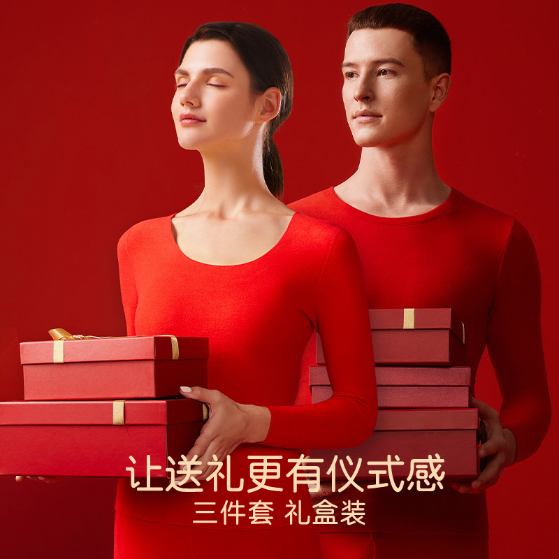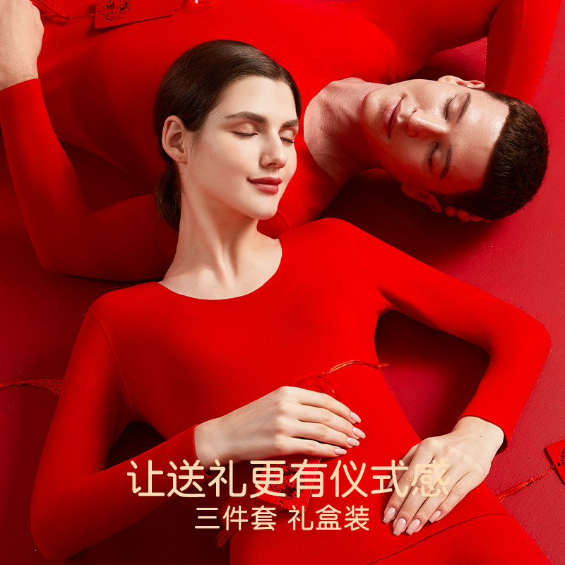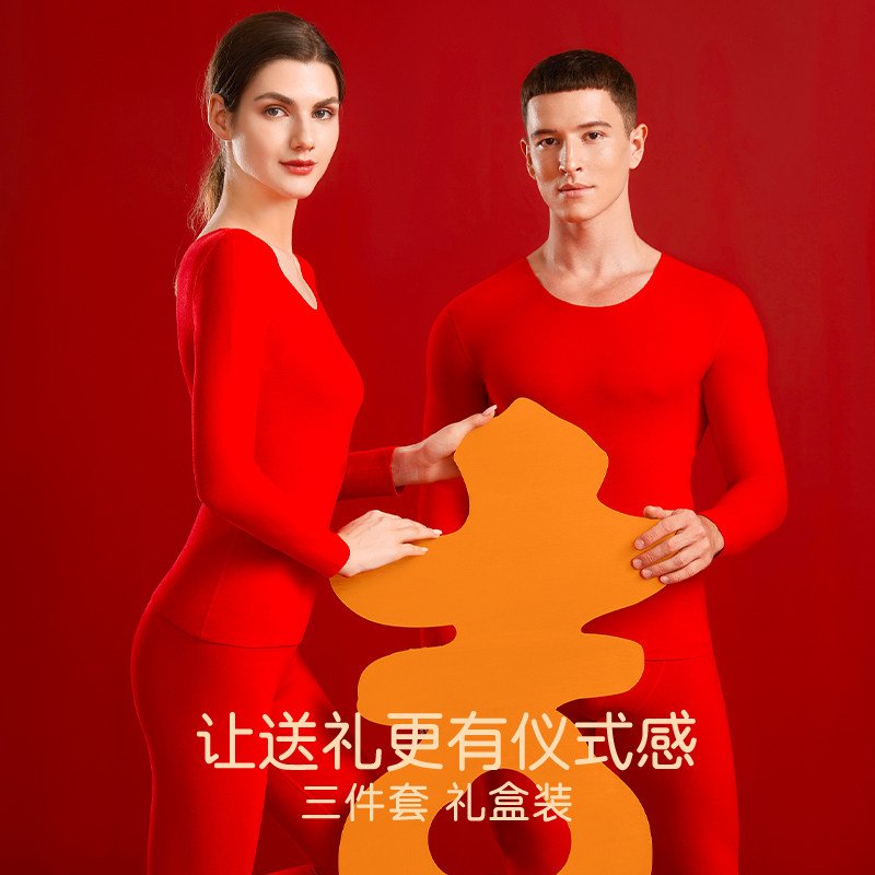 Brief cloud big red Ben life underwear suit women wool silk delsuede warm autumn clothes autumn pants for men's dragon winter-Taobao