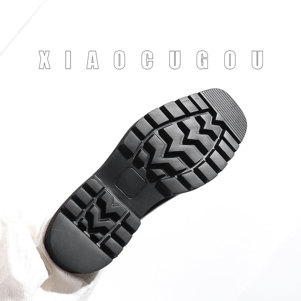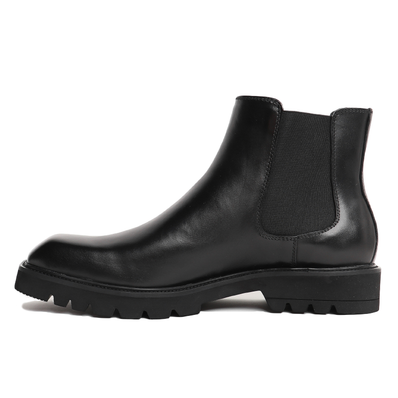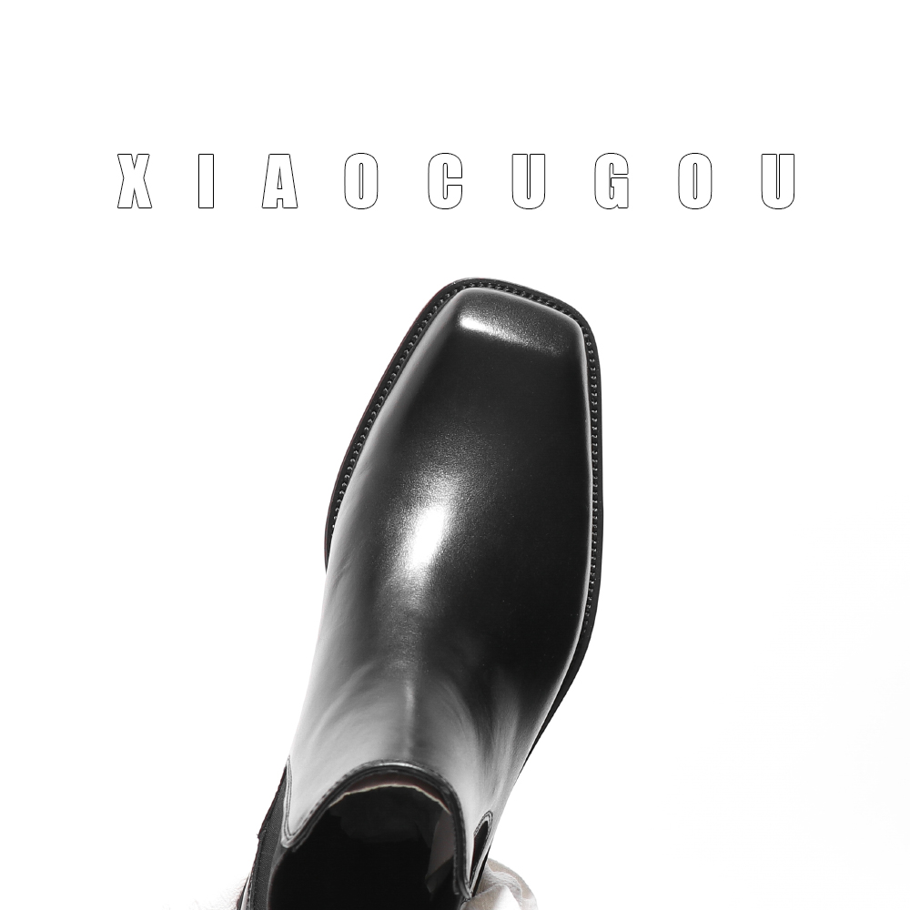 Genuine leather square head Chelsea men's head layer cow leather Martin boot thick bottom Inron wind 100 lap suit boots high help boots autumn winter