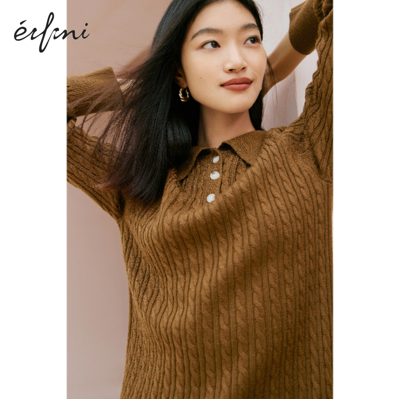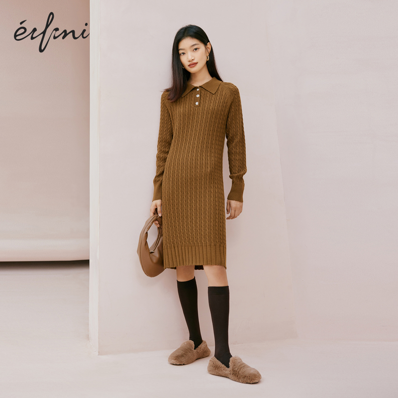 Evelie 2022 Winter Winter New Brown with Polo collar knitted dress woman